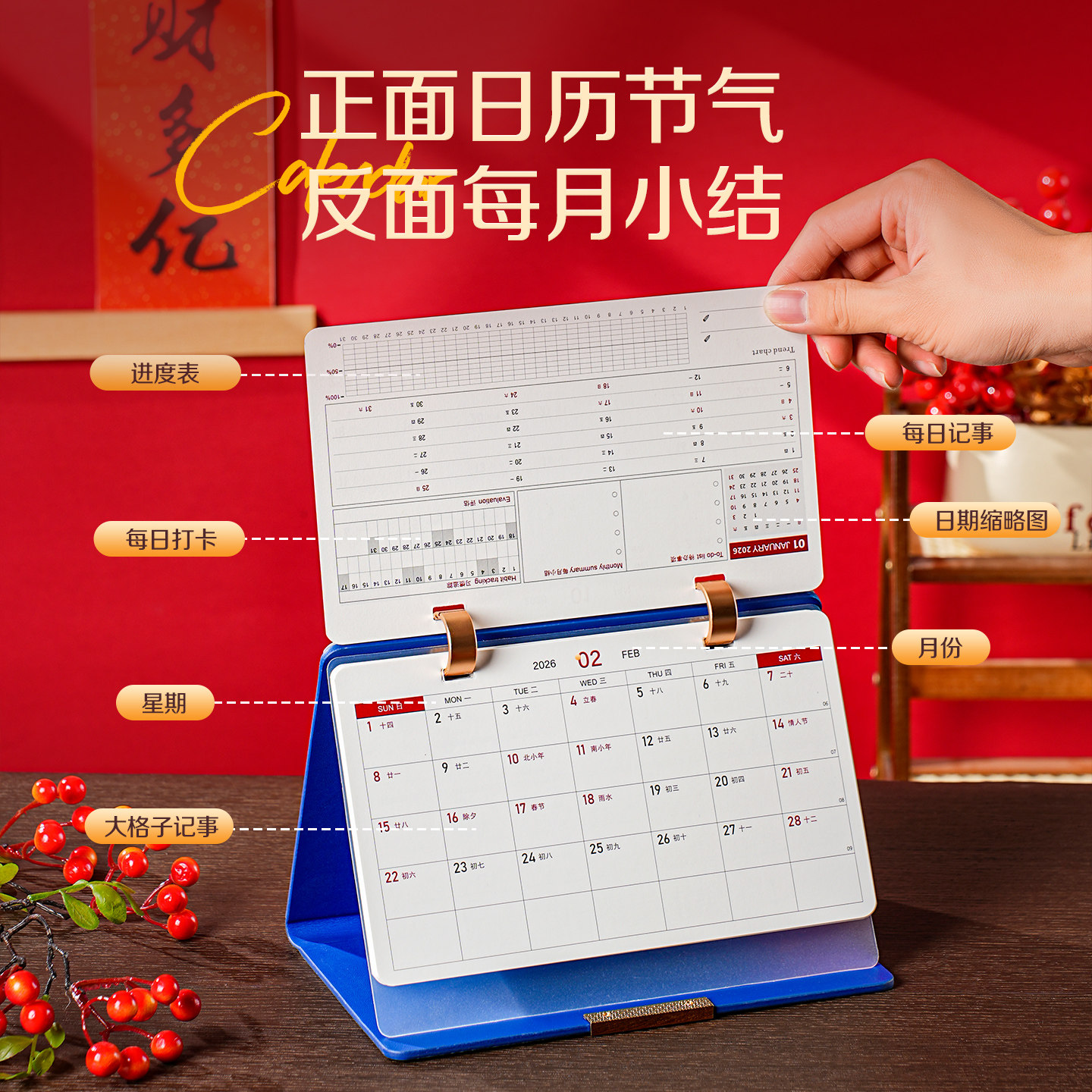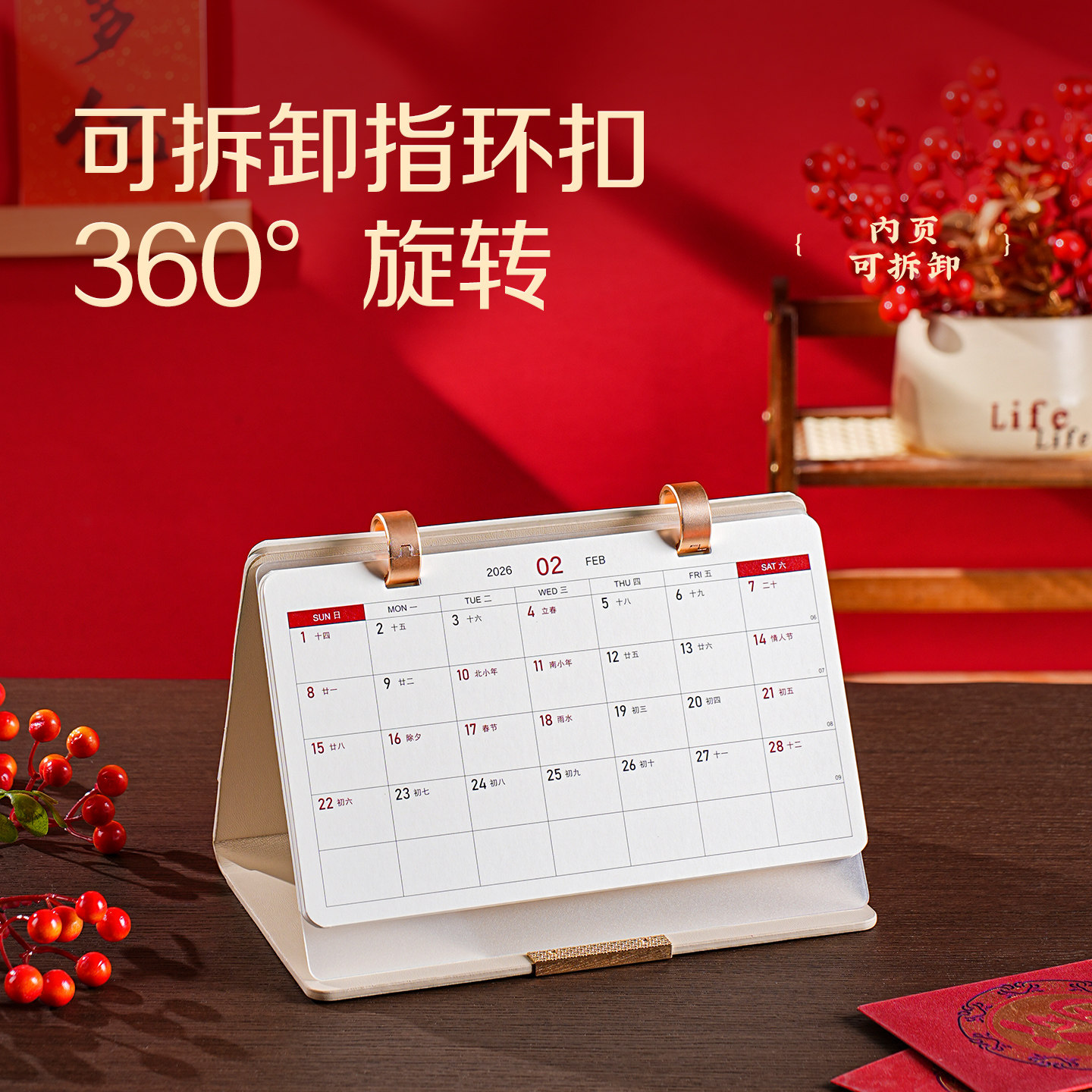 礼记2026年日历新款高档皮质台历创意记事本式桌面翻页月历周计划企业定制来图来样专版印刷