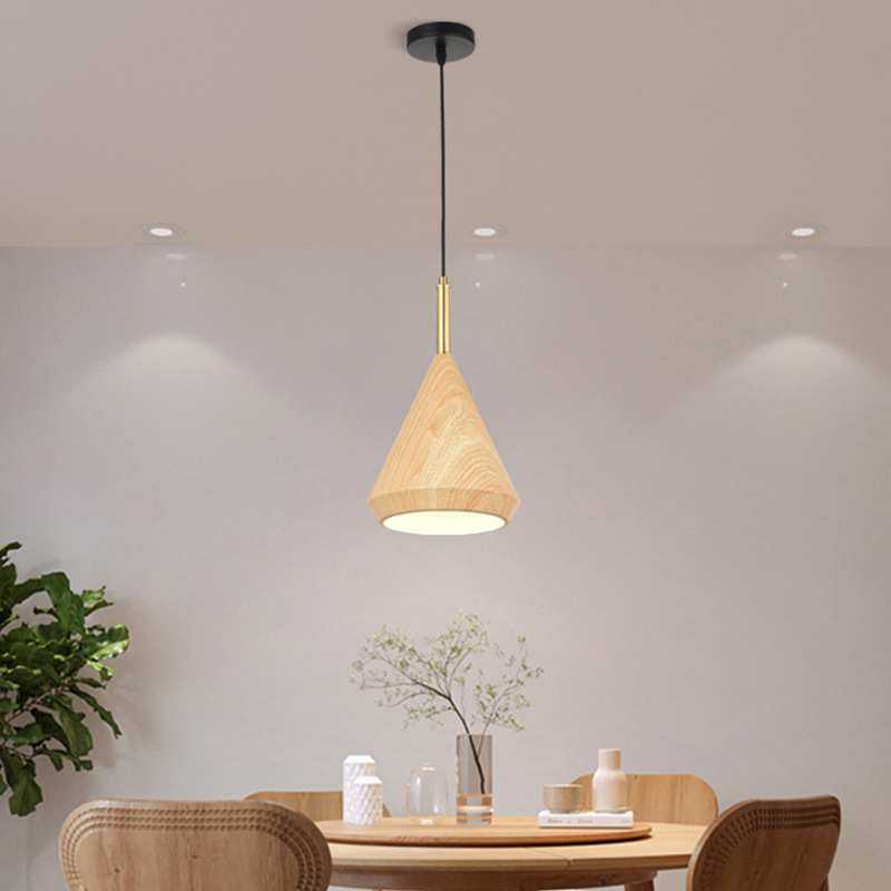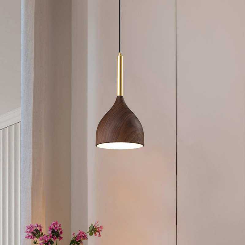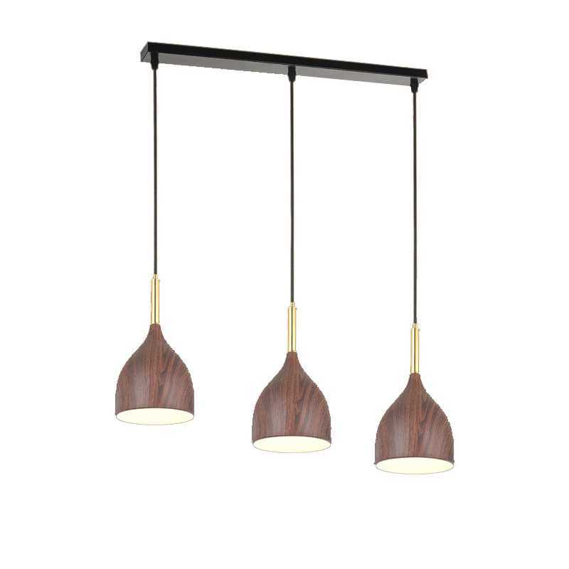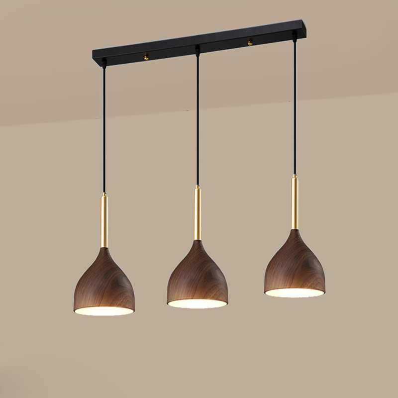 新中式三头餐厅吊灯现代简约创意中山木纹床头餐桌咖啡厅吧台灯具