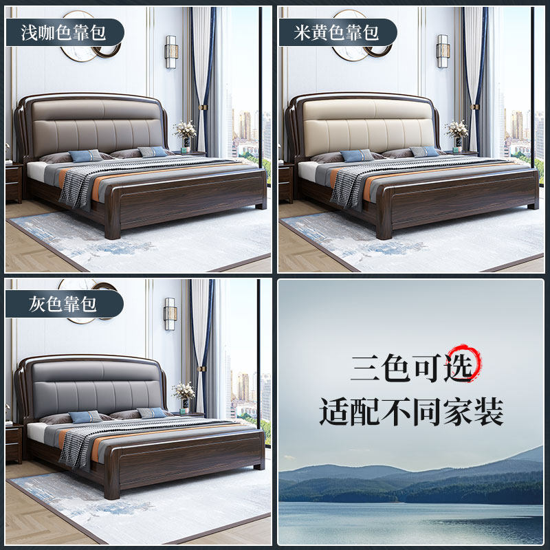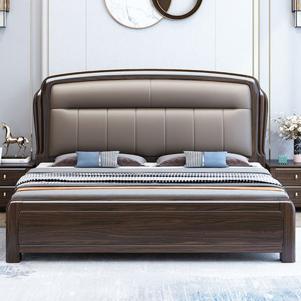 尚品宅配紫金檀木实木床轻奢真皮软包床新中式主卧双人床现代简约