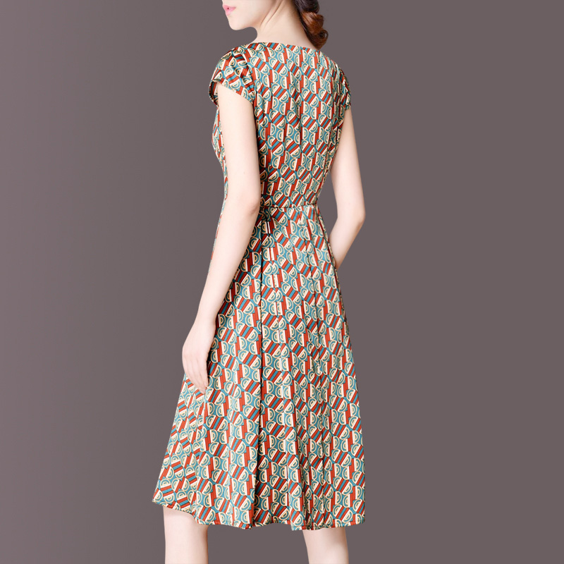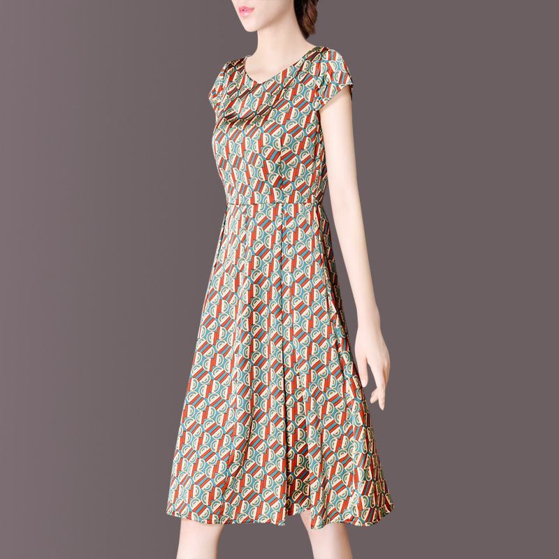 尘埃之家2025夏季新品立体印花修身大气通勤简约大摆连衣裙B210