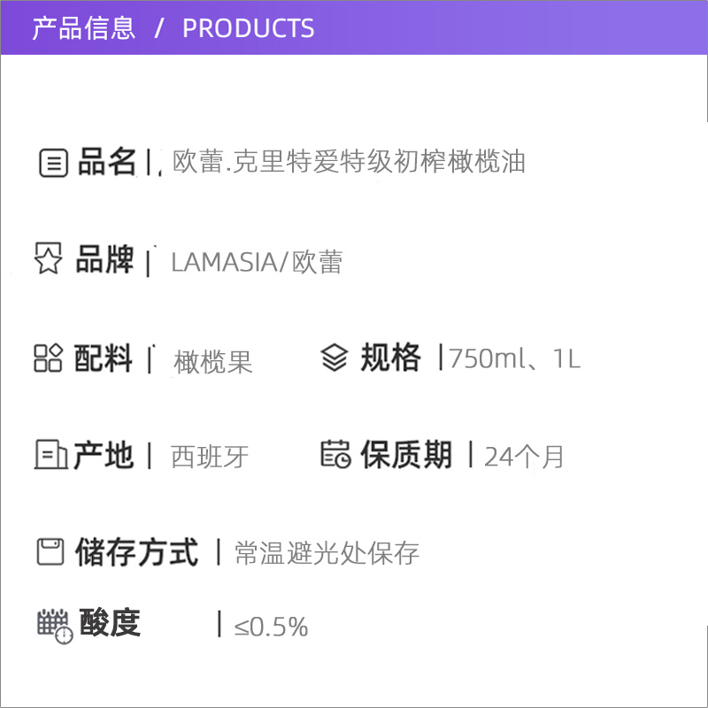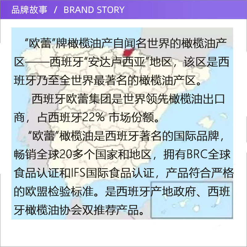 【自营】欧蕾橄榄油特级初榨西班牙原装进口低健身脂食用油炒菜1L