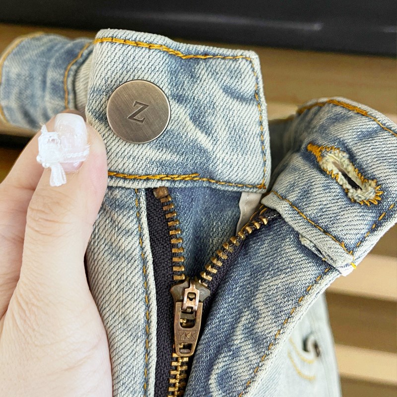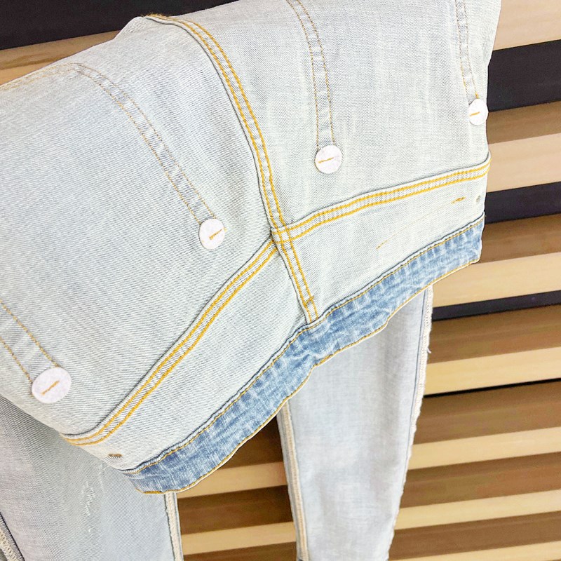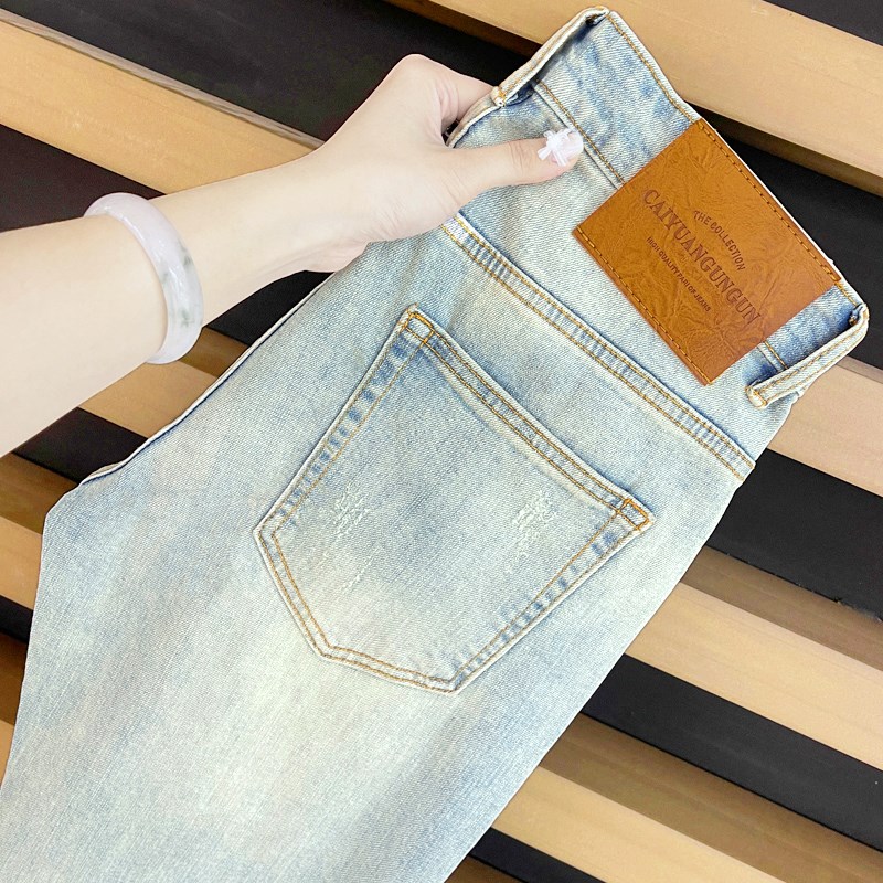 高端/做旧水洗修身九分牛仔裤/男士/复古/休闲/弹力/浅蓝色小脚裤