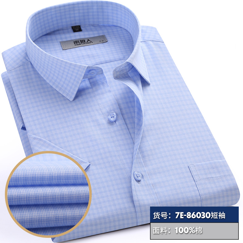 南极人格子短袖浅色衬衫男士长袖衬衣中老年休闲纯棉爸爸装宽松秋