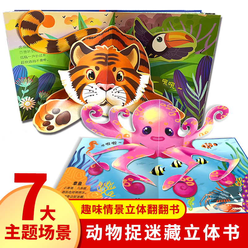 动物捉迷藏立体书 婴儿绘本宝宝看的书2-3-4–5岁3d立体书儿童6岁以上小朋友书娃娃认知书绘本图画故事亲子共读