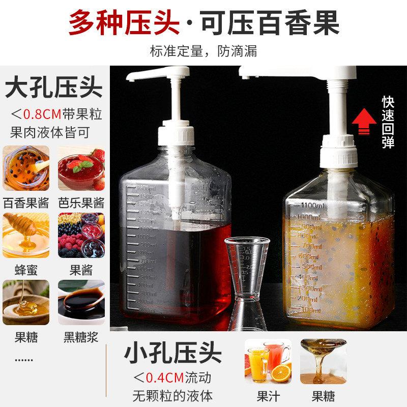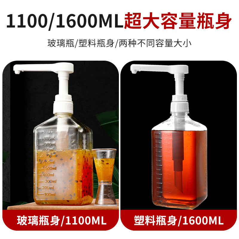 奶茶店糖压瓶糖浆玻璃塑料按压瓶百香果蜂蜜果糖瓶定量器挤压商用