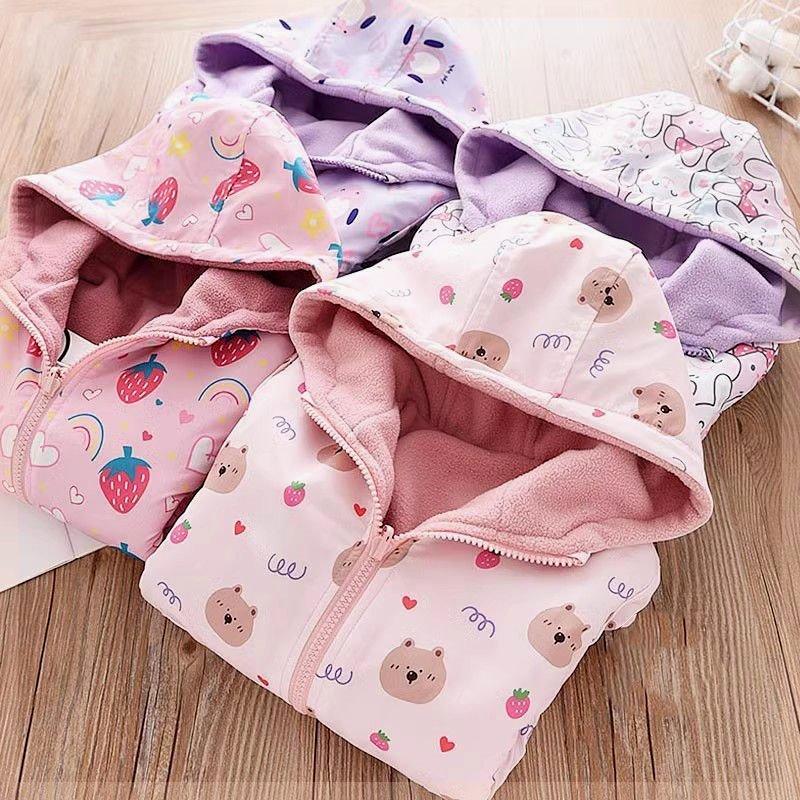 女童外套早春深秋摇粒绒冲锋衣2025新款春秋款童装加绒连帽风衣潮