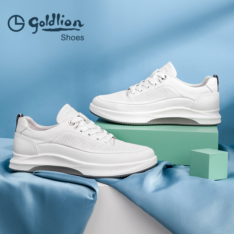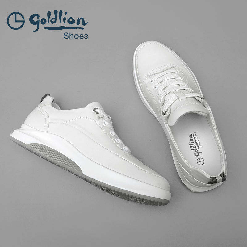金利来男鞋秋季新款休闲皮鞋舒适运动真皮软面轻底白色板鞋