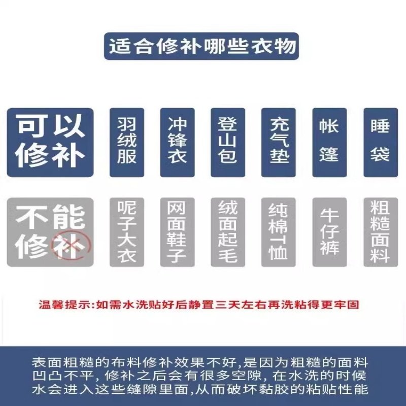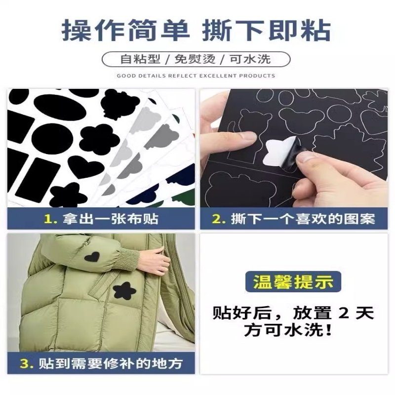 德国进口品质羽绒服贴布补丁贴可水洗高端修补无痕贴自粘免缝布贴