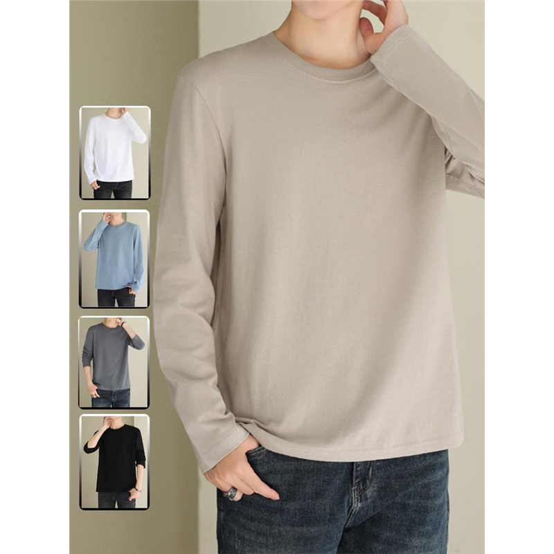 以纯YISHION长袖t恤男秋冬宽松休闲纯色圆领上衣男士潮流打底衫