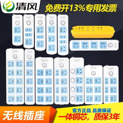 清风插座不带线无线插排自接线排插插板插线板接线板带开关拖线板