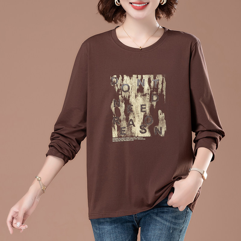 50多岁妈妈长袖t恤女纯棉洋气中老年时尚秋衣外穿宽松特大码上衣