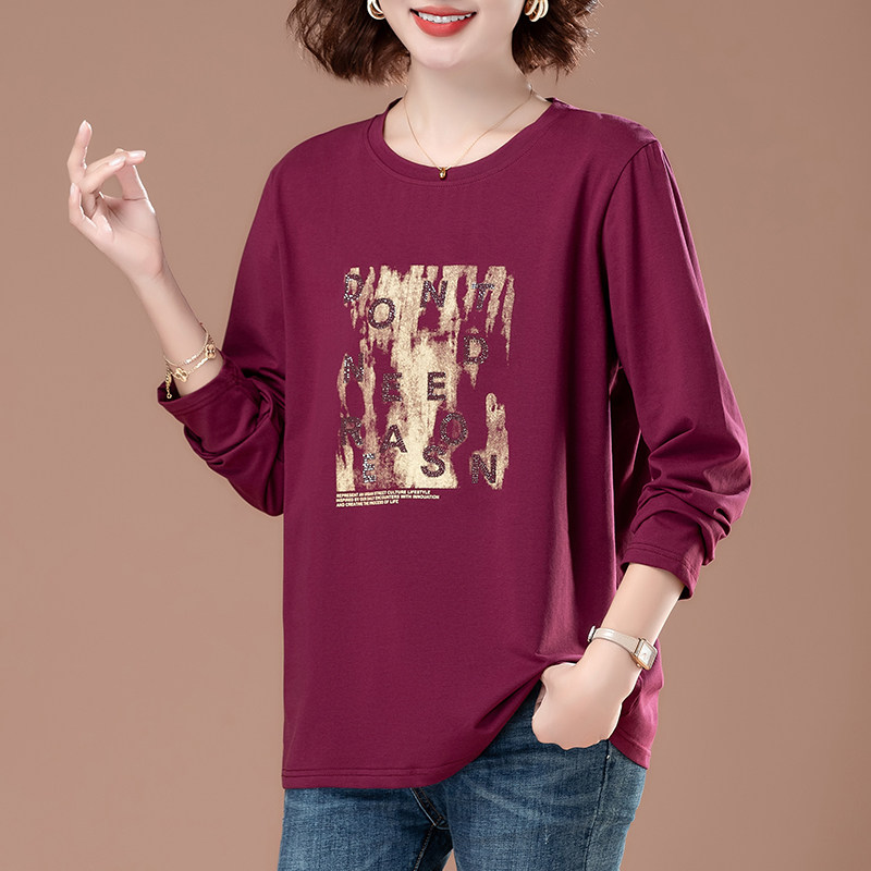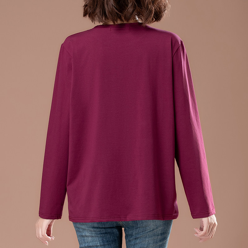 50多岁妈妈长袖t恤女纯棉洋气