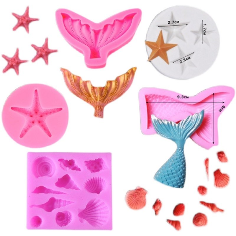 海洋硅胶模具蛋糕装饰海星贝壳海螺美人鱼尾巧克力翻糖蛋糕模具