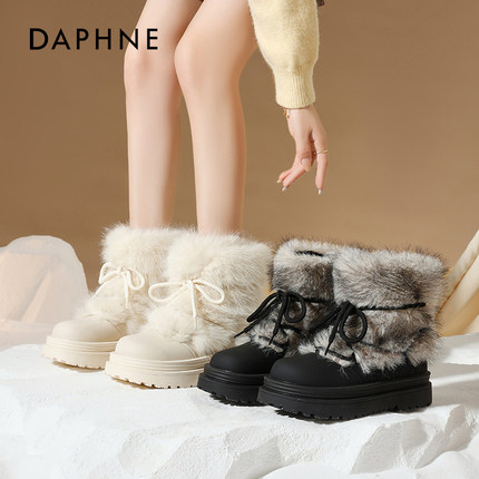达芙妮2025新款冬季加绒雪地靴女