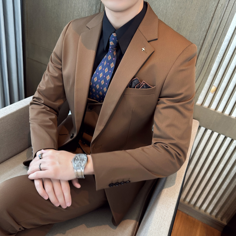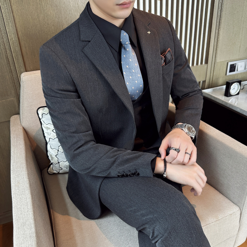 高级感单排扣西装男套装商务休闲职业正装英伦风潮流新郎结婚礼服