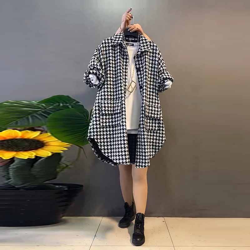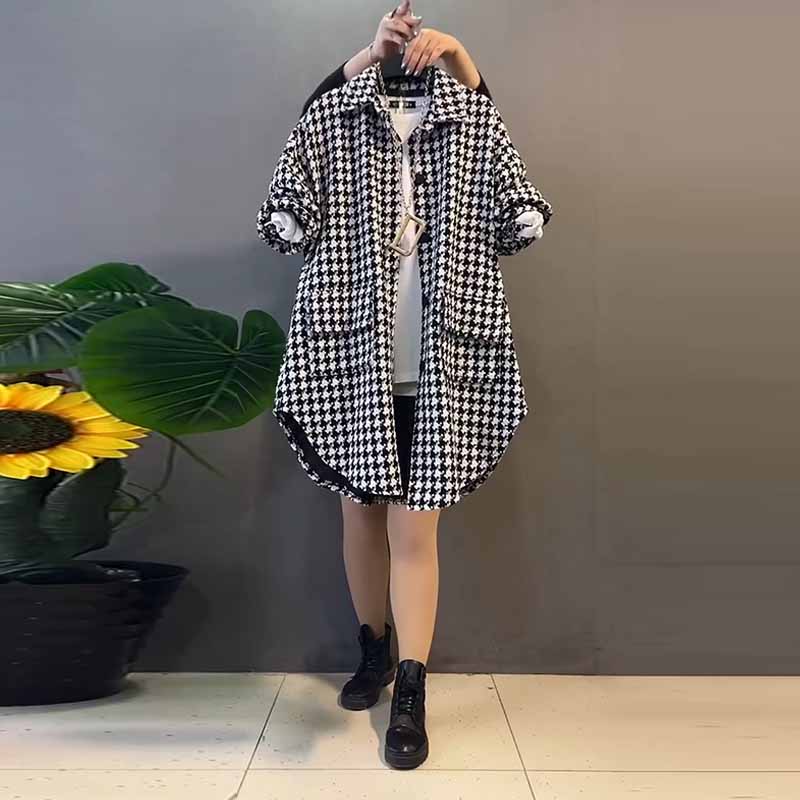 胖妹妹中长款休闲百搭遮臀上衣加肥韩版大码女装长袖开衫翻领衬衫