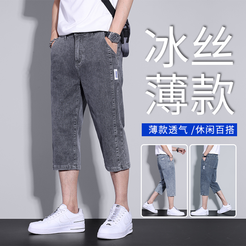 弹力牛仔七分裤男士宽松夏季薄款中裤过膝休闲短裤男土八分裤马裤