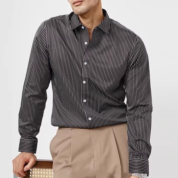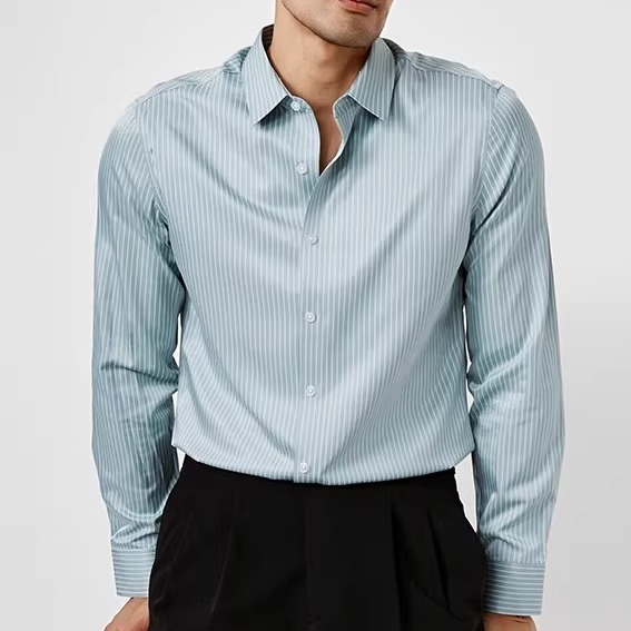 高级条纹男士衬衫长袖秋季新款
