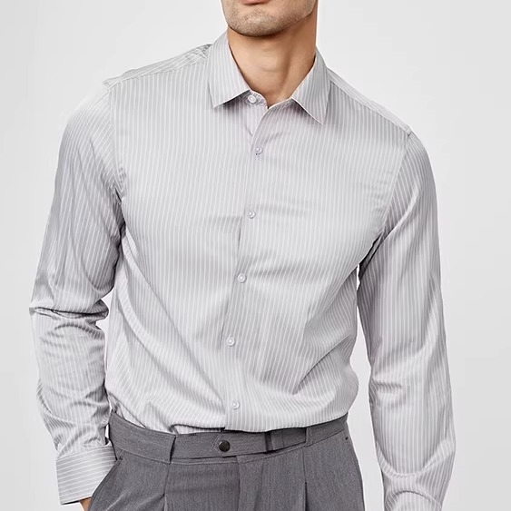 高级条纹男士衬衫长袖秋季新款休闲修身高级商务衬衣潮流帅气男装