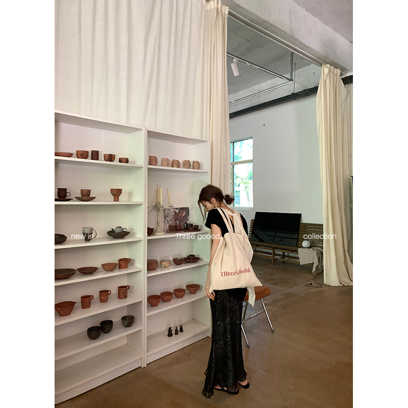 THREE GOOOD殷三吉 后背绑带荡领设计中长款针织T恤短袖上衣女