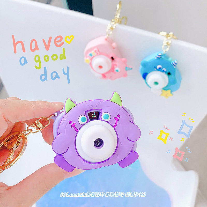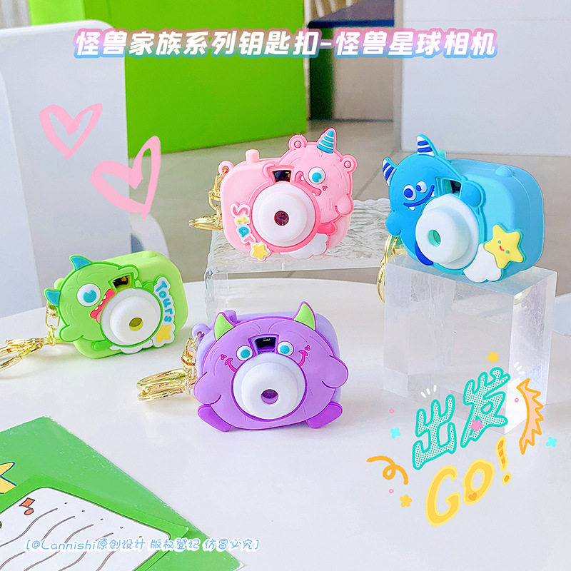 怪兽家族投影相机钥匙扣创意星空万花筒迷你发光玩具书包挂件礼物