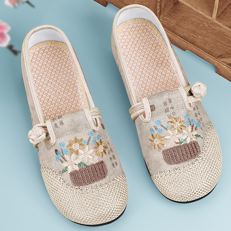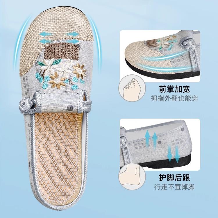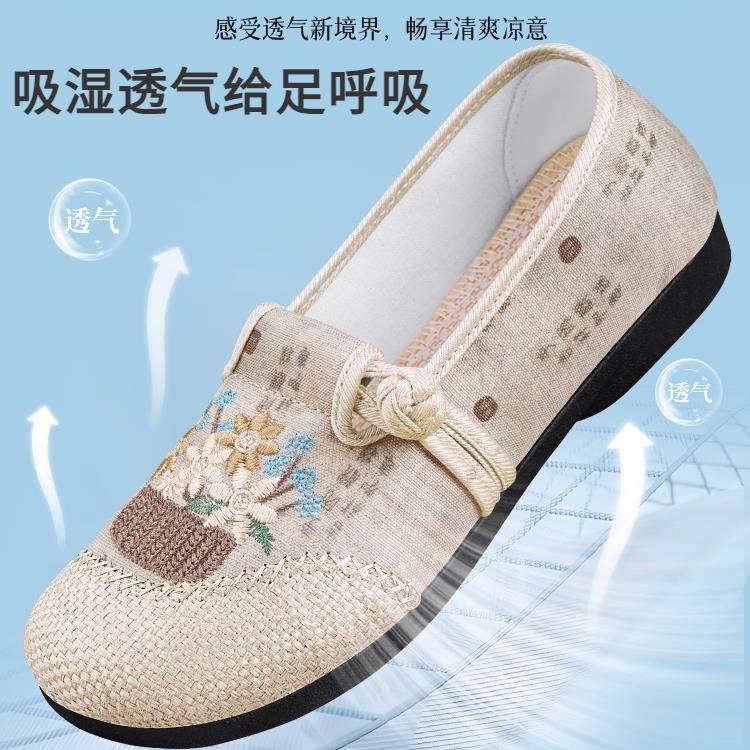 国风妈妈绣花鞋老北京布鞋女平底防滑单鞋软底不累脚透气网面鞋子