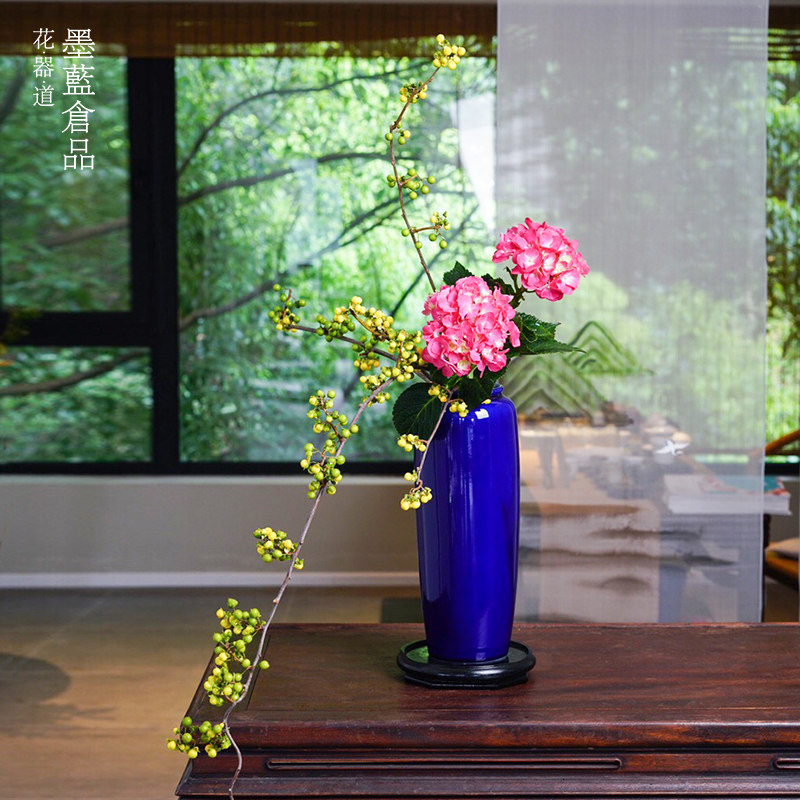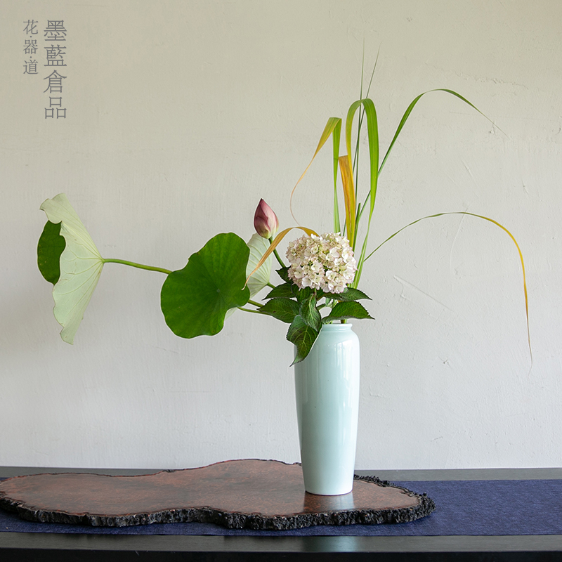 小原流投入瓶花器禅意日式花道器皿 中式复古陶瓷花艺插花大花瓶