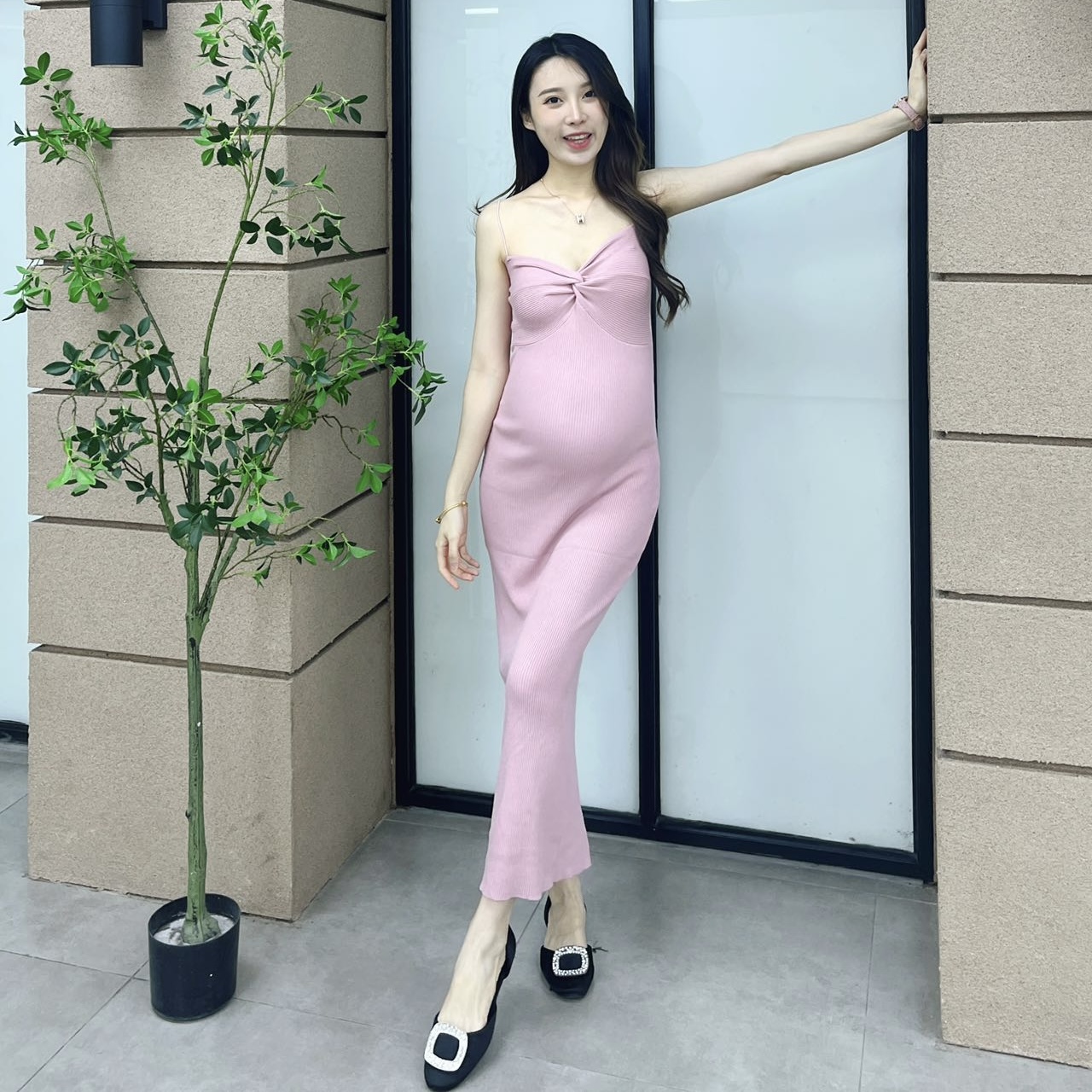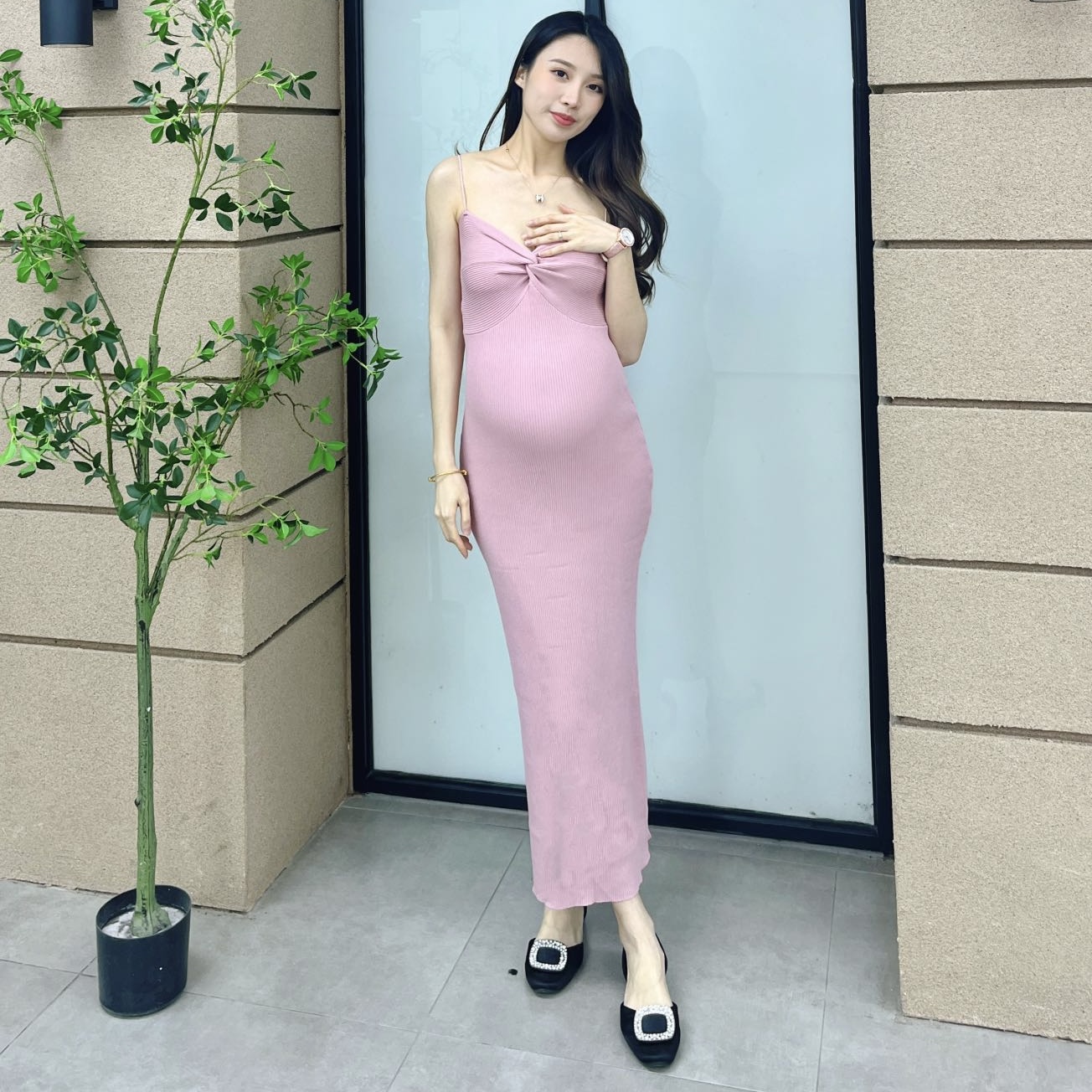 孕妇复古气质显瘦开叉背心裙