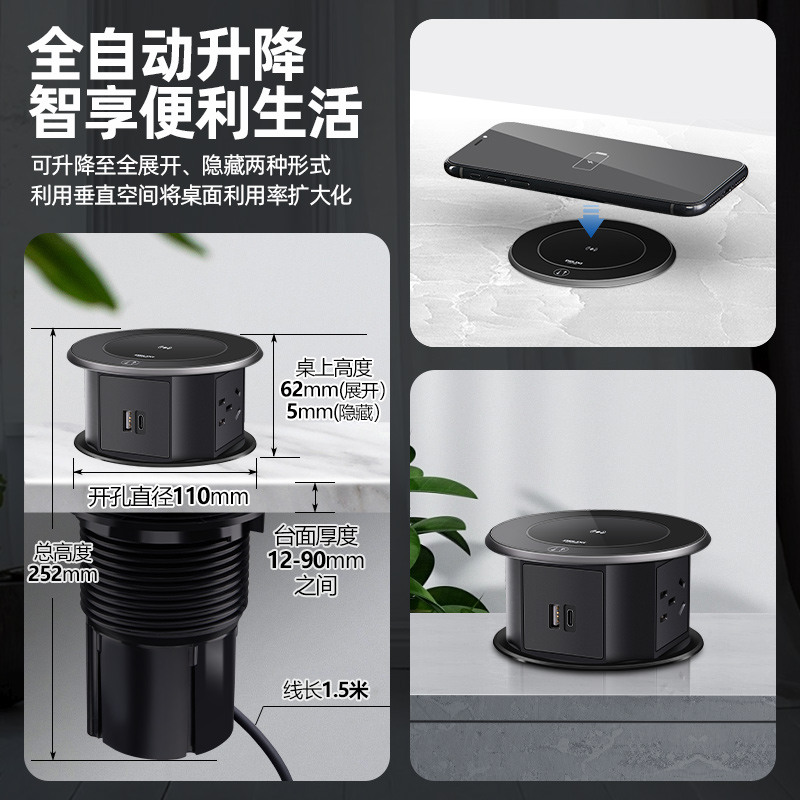 德力西升降插座嵌入式岛台厨房自动智能插排隐藏式桌面开关排插座