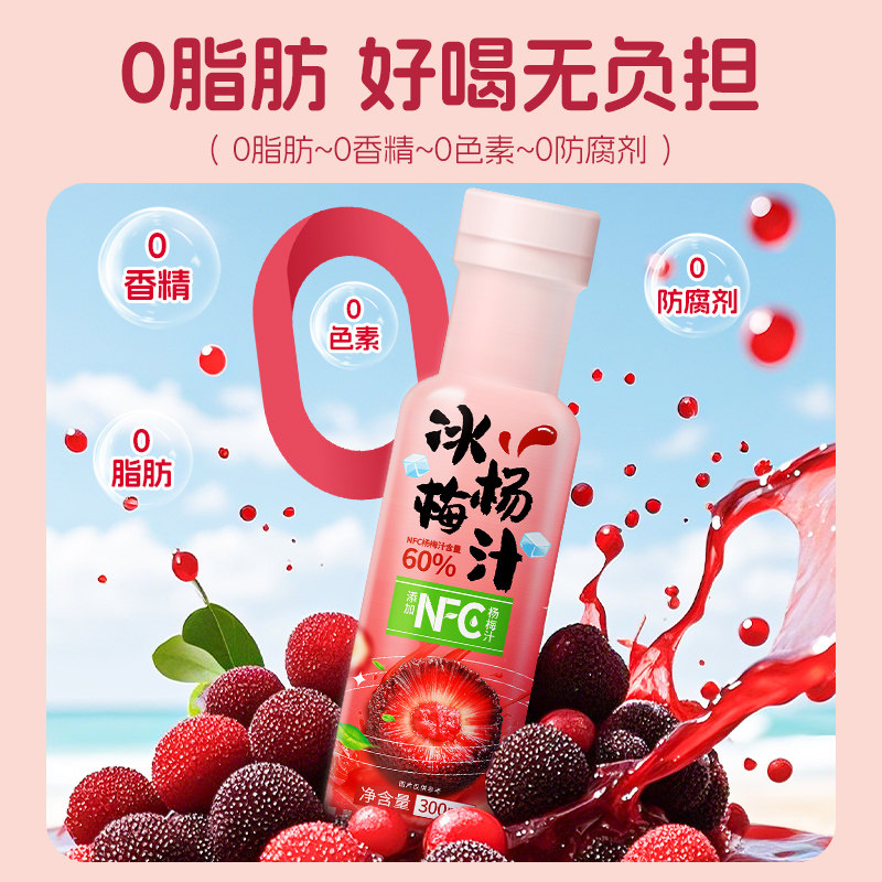 冰杨梅汁饮料官方旗舰店仙居杨梅汁NFC鲜榨果汁夏天解暑300ml*6瓶