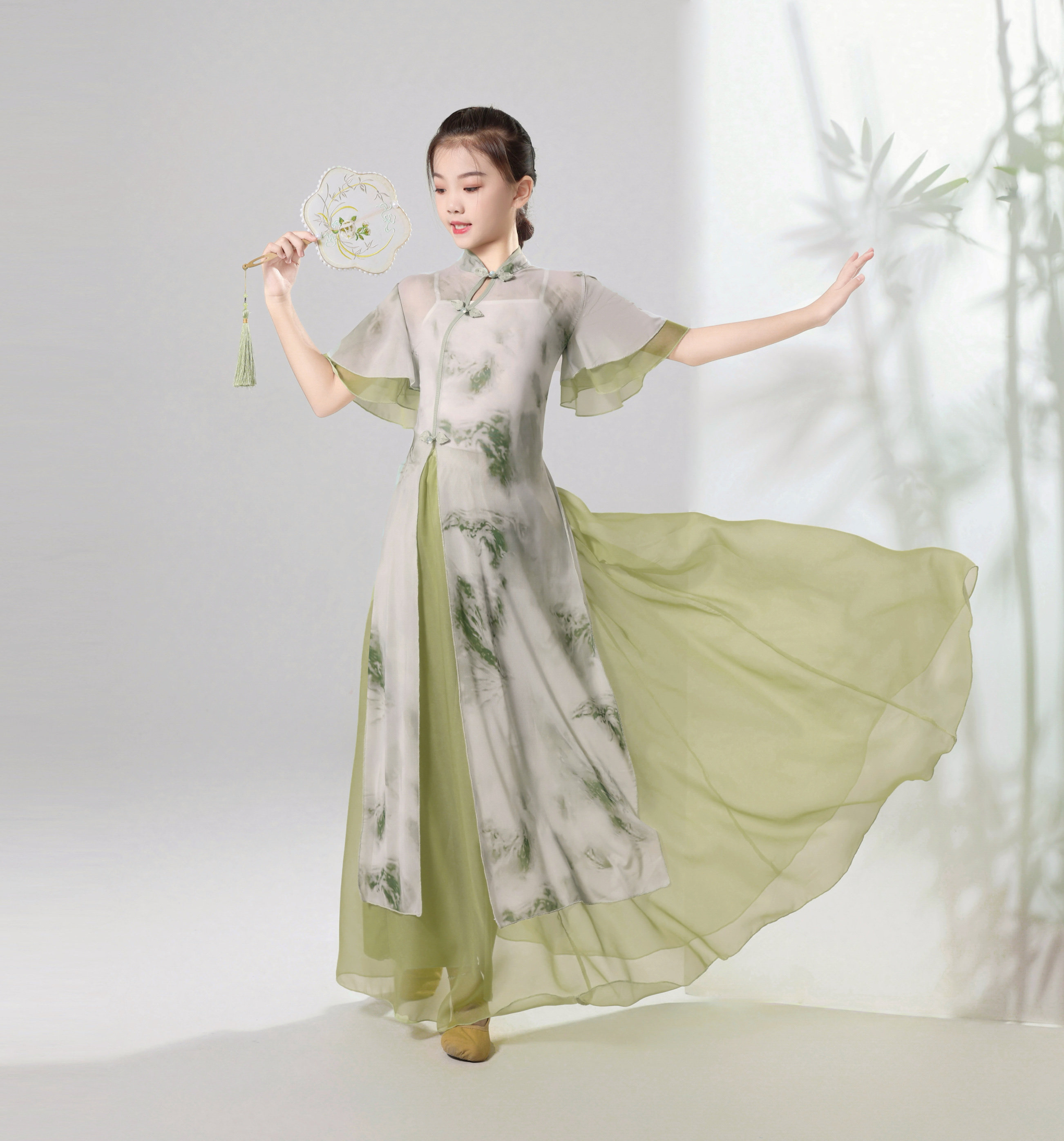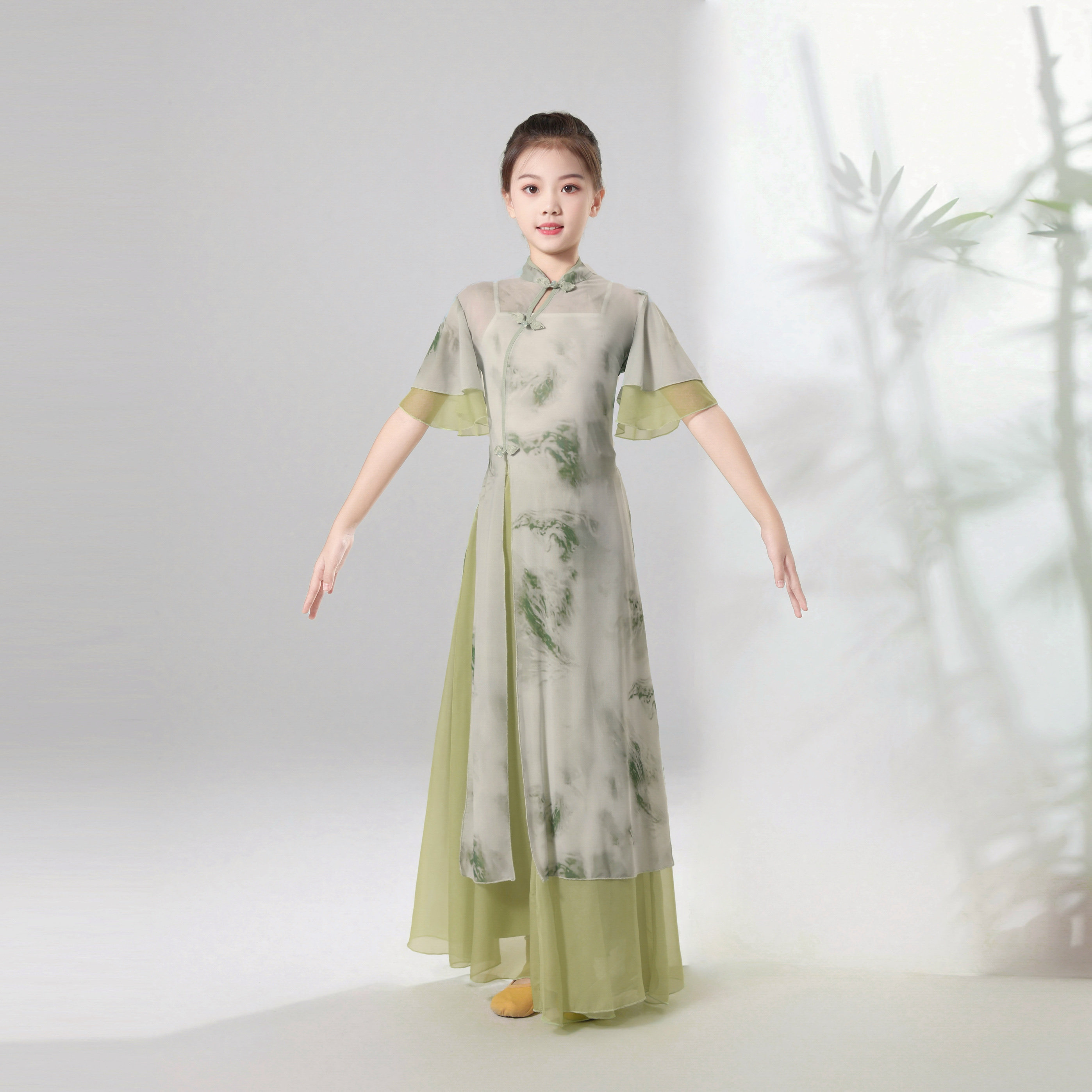 新款女童古典舞演出服旗袍套装练功服身韵纱衣中国风舞蹈表演服