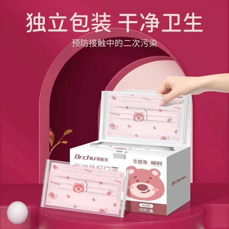医用外科口罩可爱医疗医护成人卡通透气仙女网红印花可爱小熊口罩