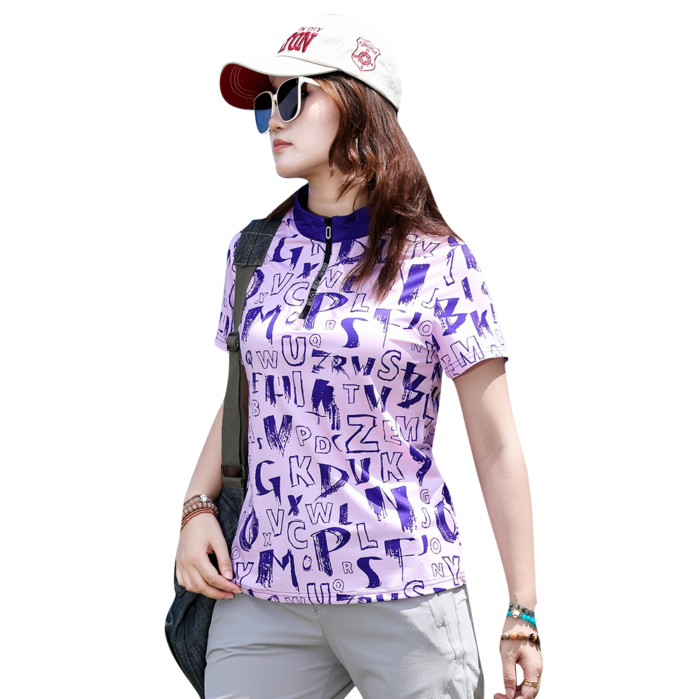 户外短袖速干T恤女数字运动夏季跑步健身排汗透气弹力立领快干衣