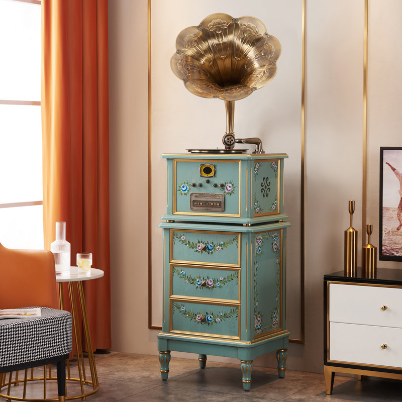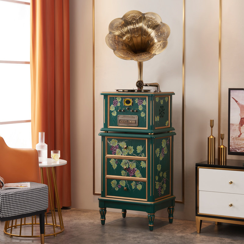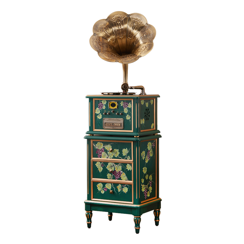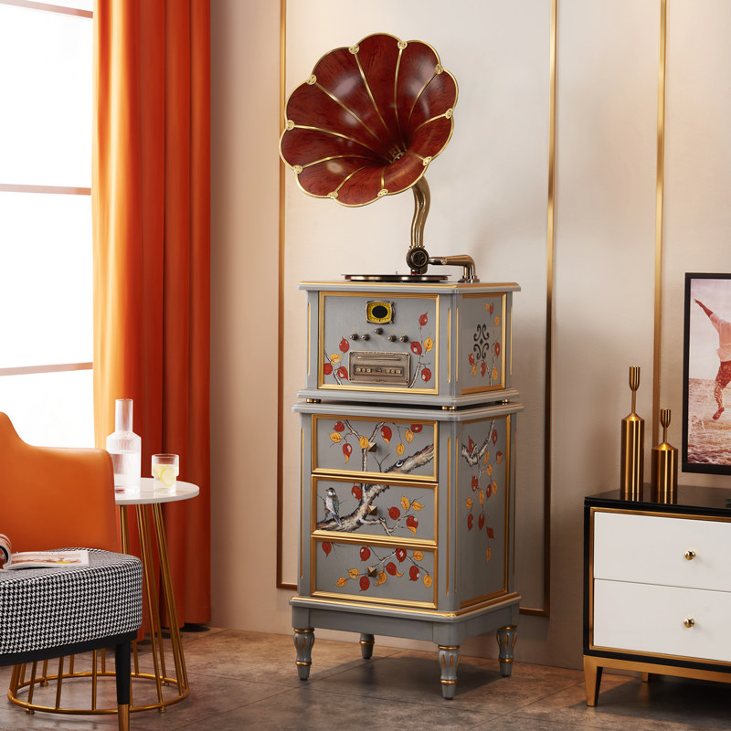 圣利纳留声机南洋中古法式黑胶唱片机彩绘复古客厅实木摆件大喇叭