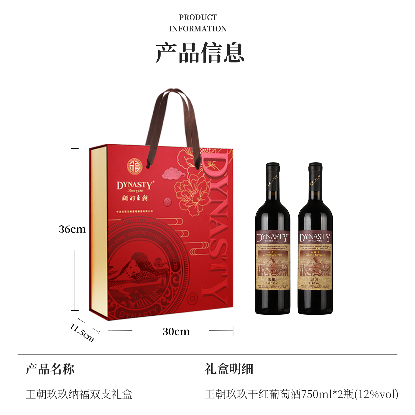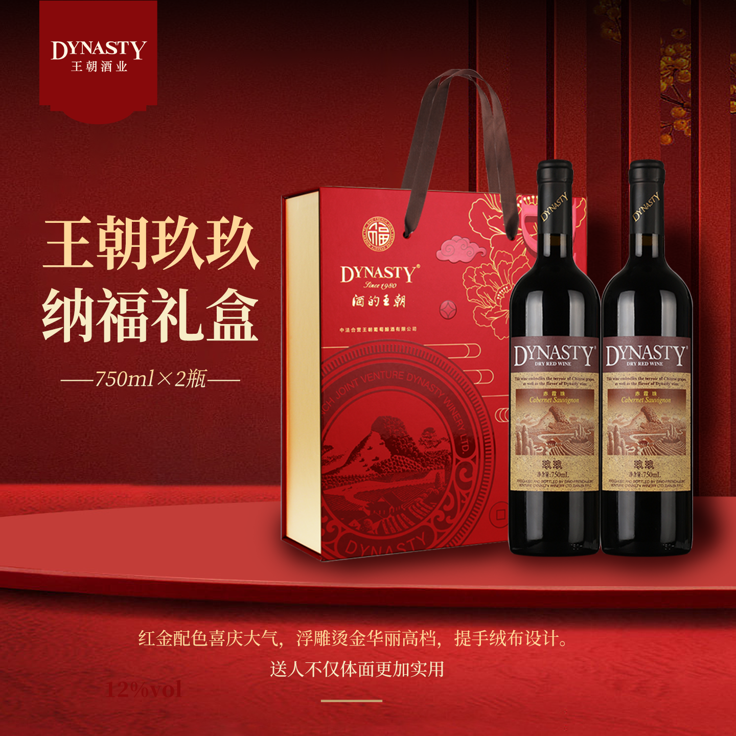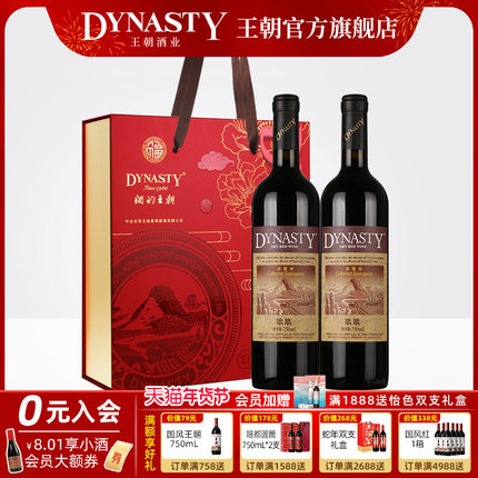春节红酒礼盒王朝干红葡萄酒官方旗舰店Dynasty正品玖玖赤霞珠2瓶