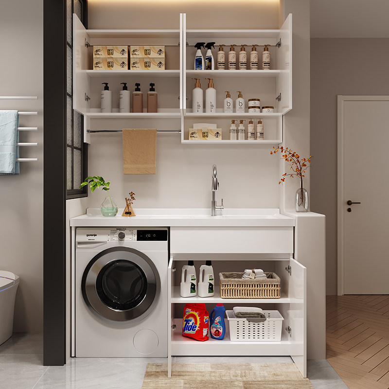 不锈钢蜂窝铝阳台洗衣机柜定制洗衣池台盆带搓一体洗衣柜伴侣组合