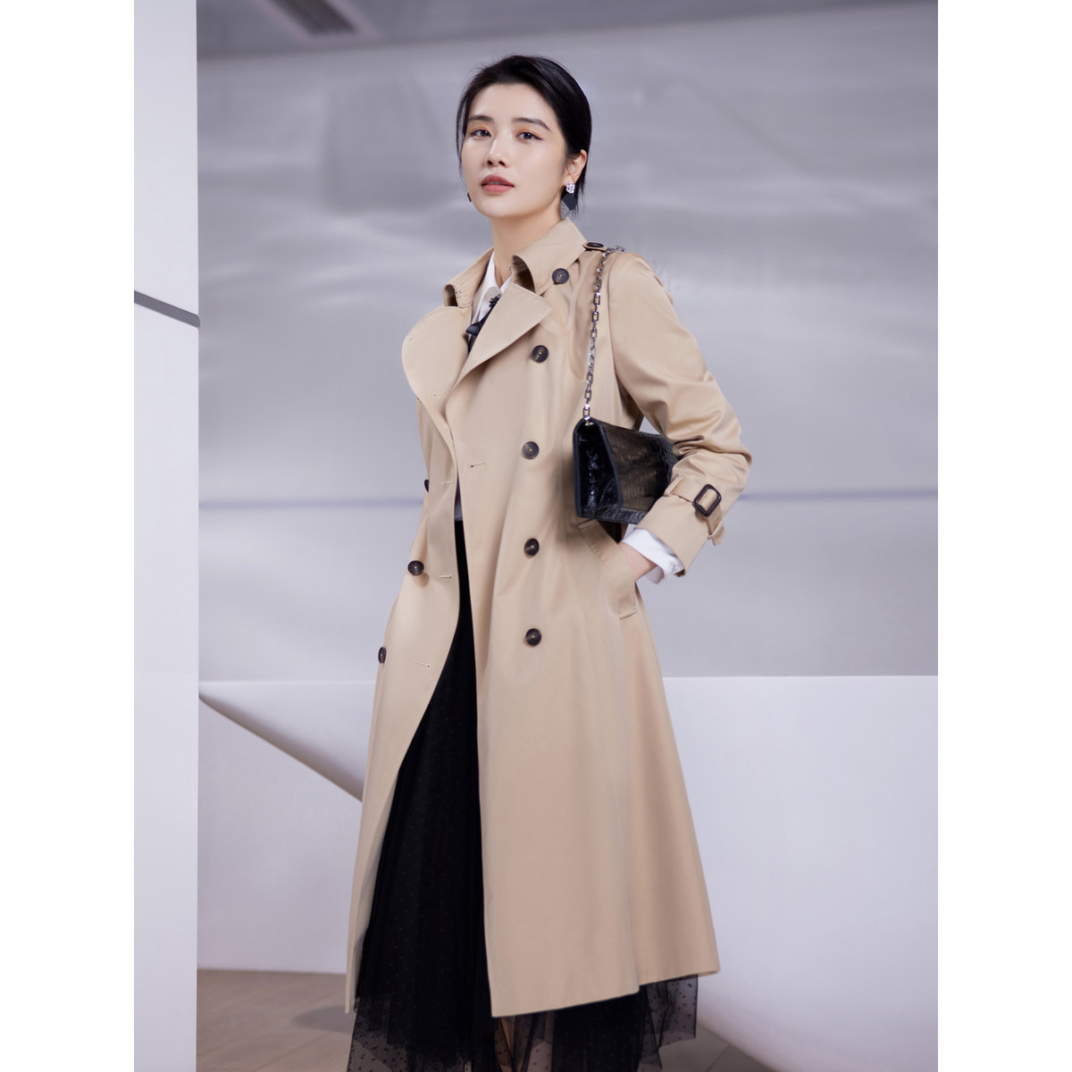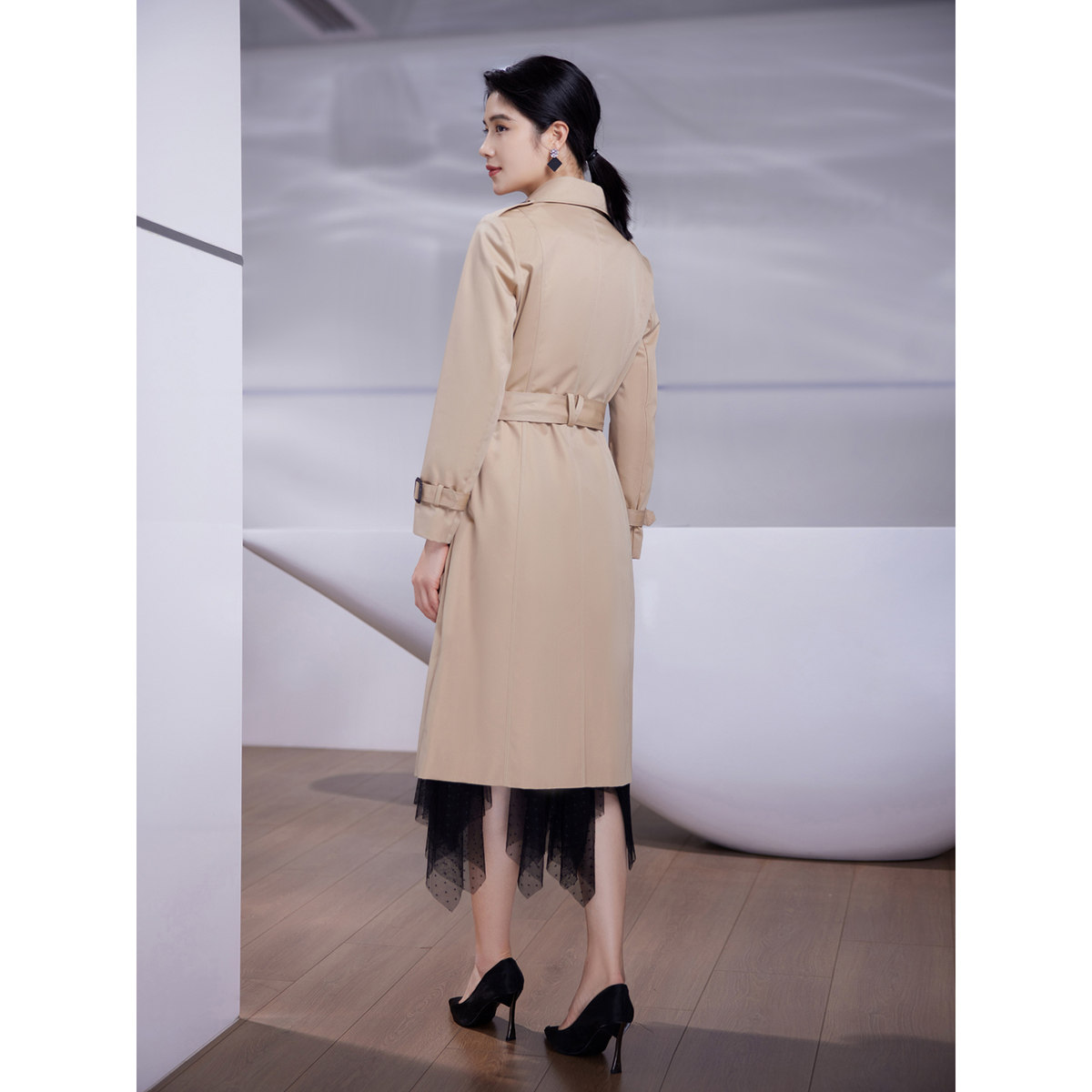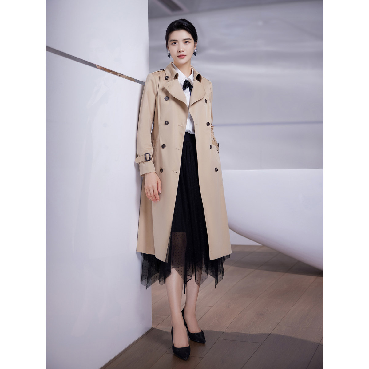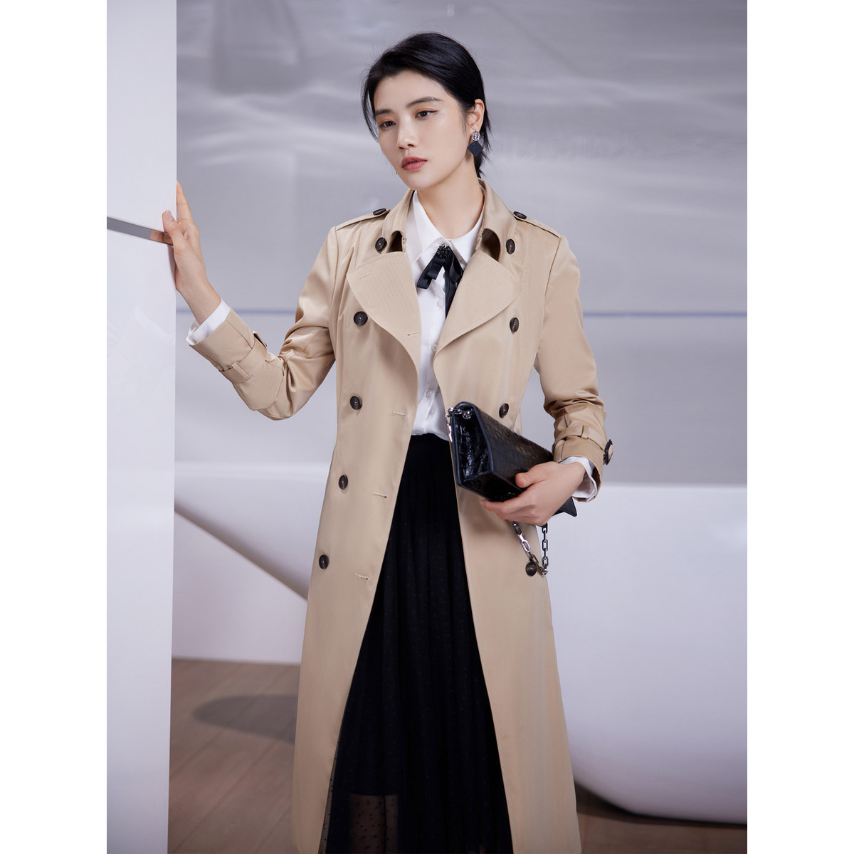 【商场同款】BBLLUUEE粉蓝衣橱经典英伦风复古风衣大气戗驳领外套