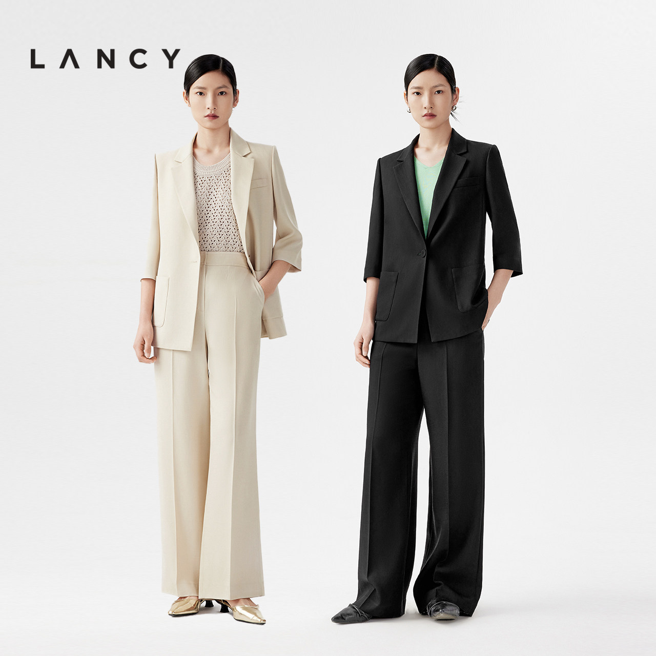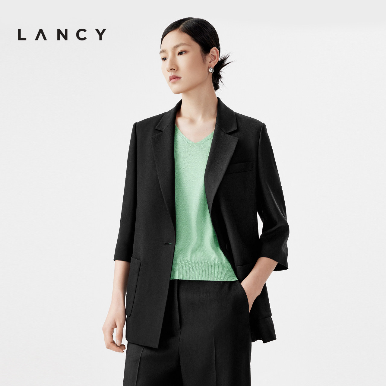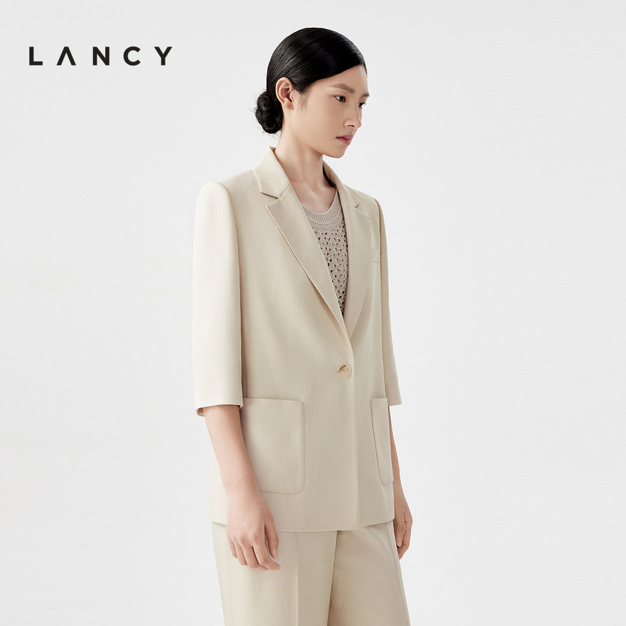 LANCY/朗姿2024夏季新款一粒扣商务通勤七分袖直筒醋酸西装外套女
