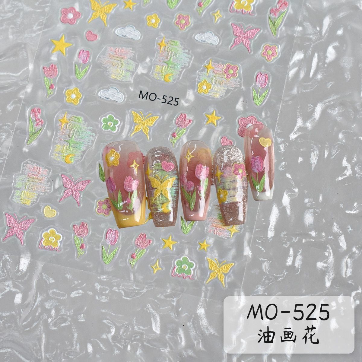 春夏缤纷色彩油画小花浮雕贴纸美甲简约油画月亮小野花指甲装饰品