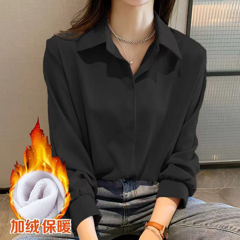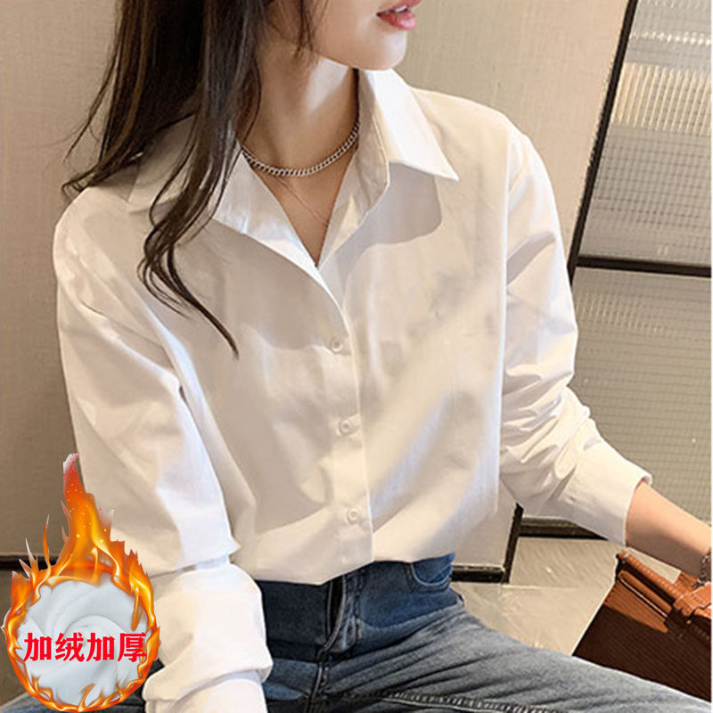 秋冬加绒白色衬衫女胖mm大码内搭加厚叠穿夹棉打底衫一体绒衬衣