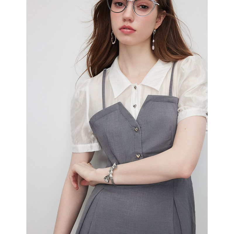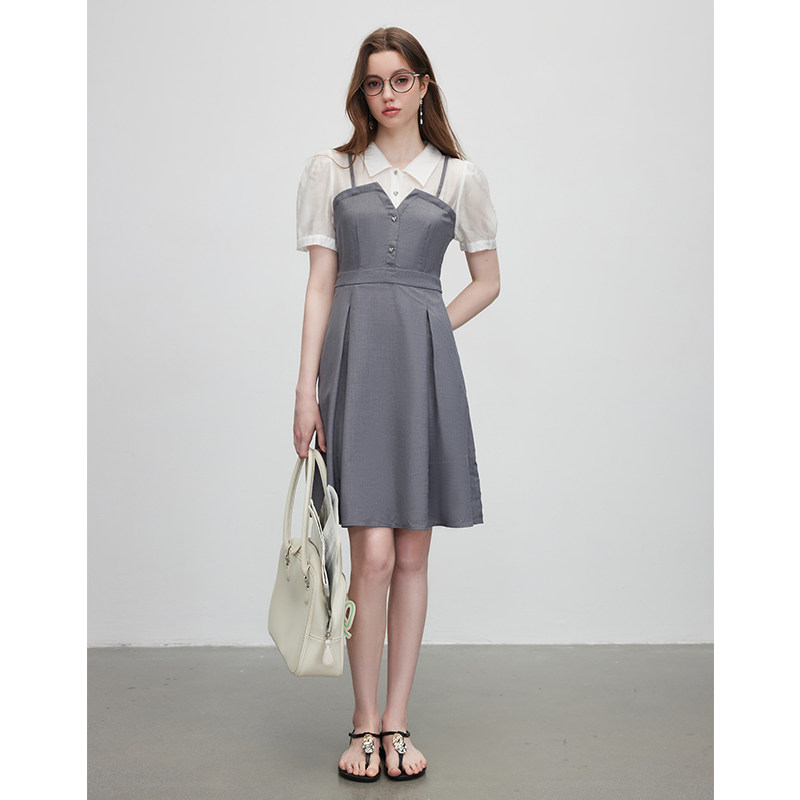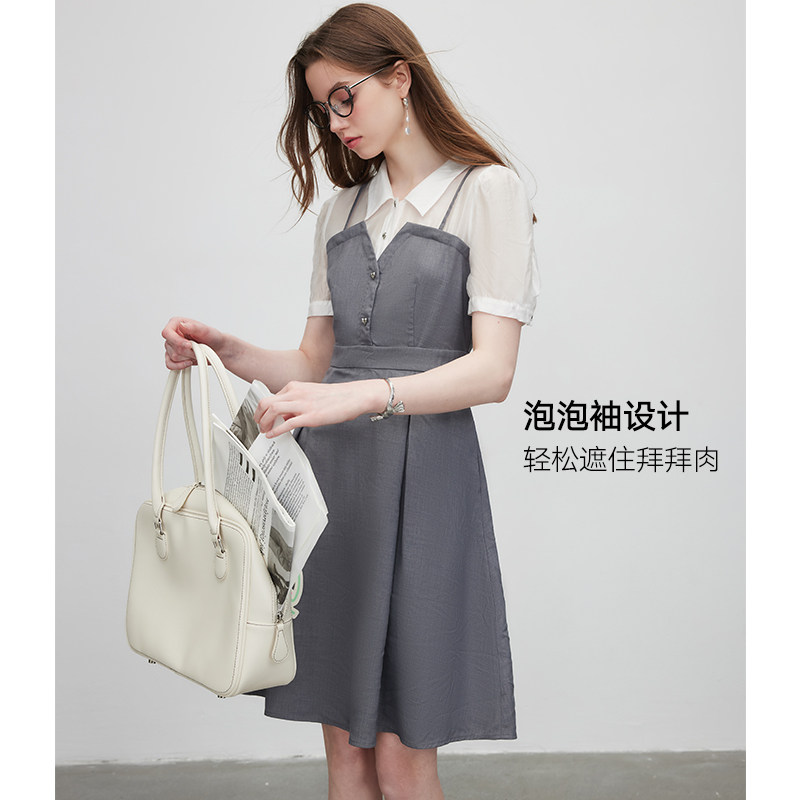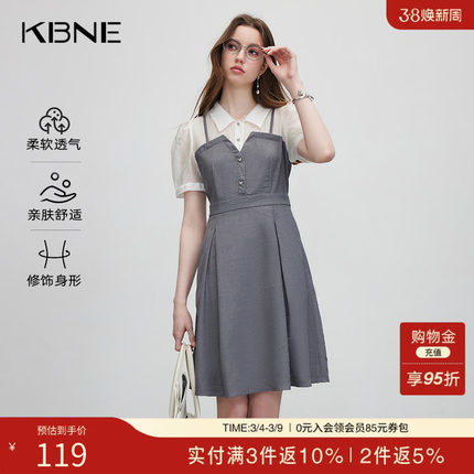 KBNE衬衫连衣裙女气质拼接设计感小众2025夏装新款收腰显瘦裙子