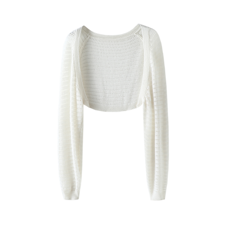 上身让人心动~纯羊绒防晒开衫女薄款镂空短外套披肩针织空调罩衫