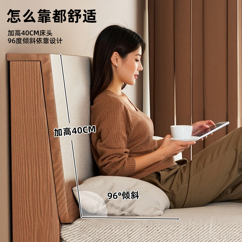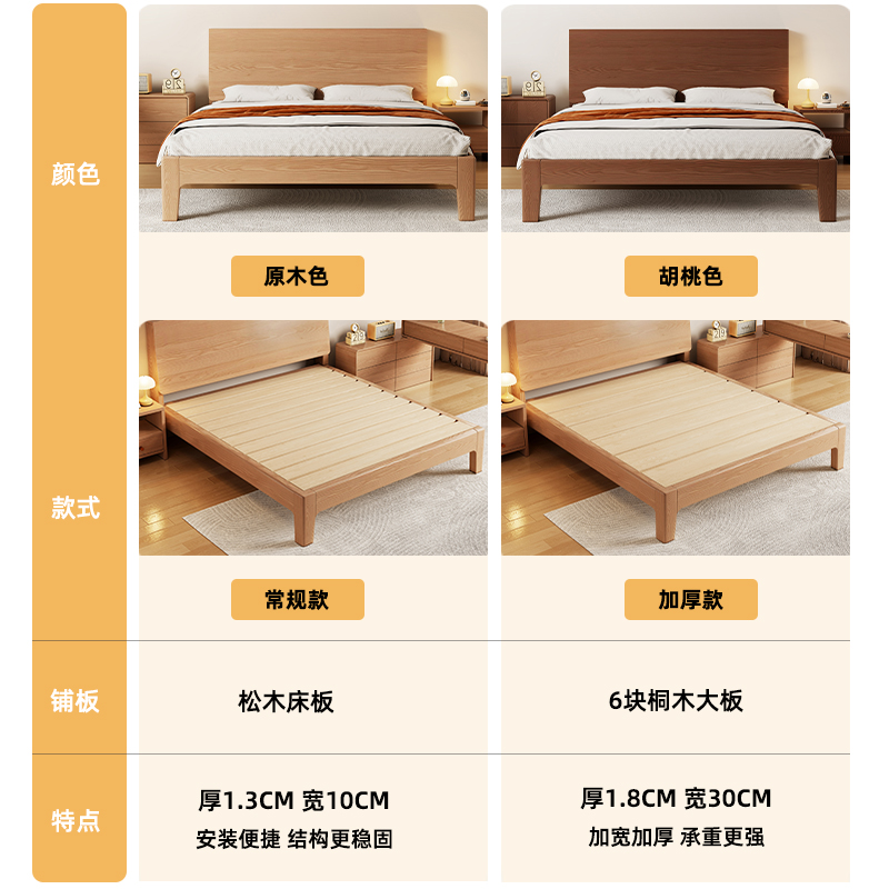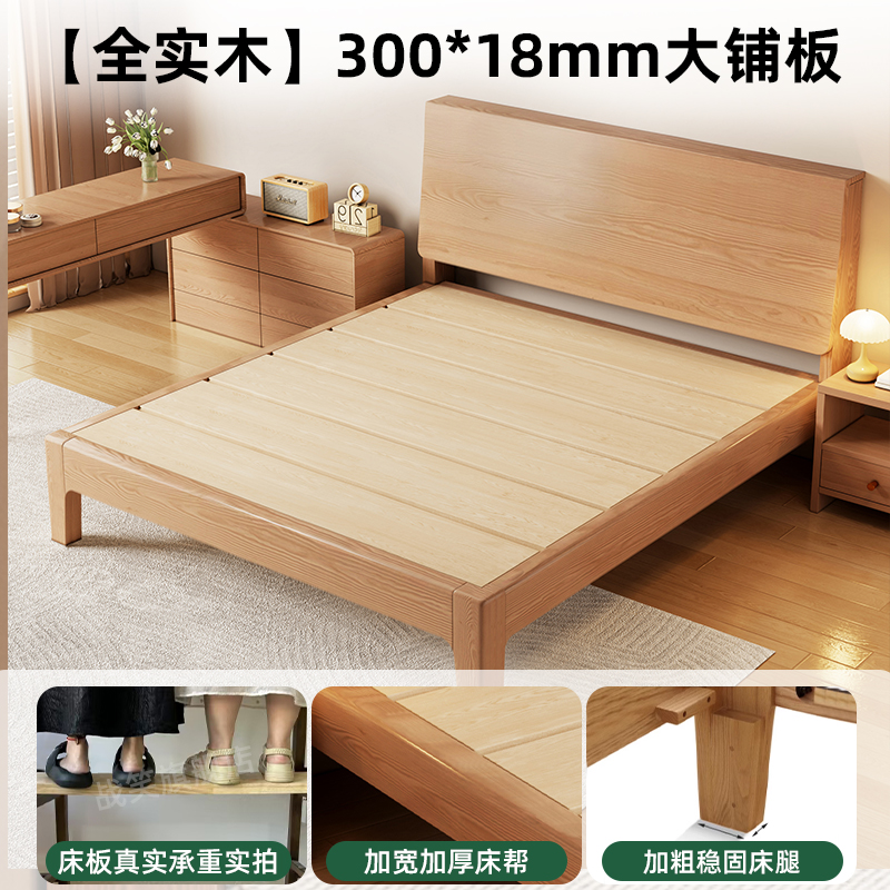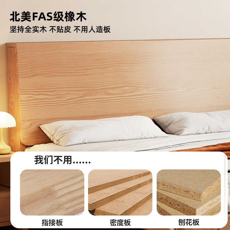 实木床现代简约橡木双人床北欧卧室家用原木风1.8m双人床1.2米1.5