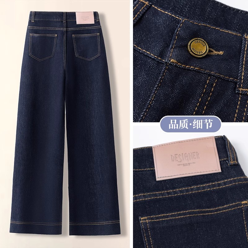 复古茶色阔腿牛仔裤女夏季薄款2025新款高腰显瘦窄版九分直筒裤子