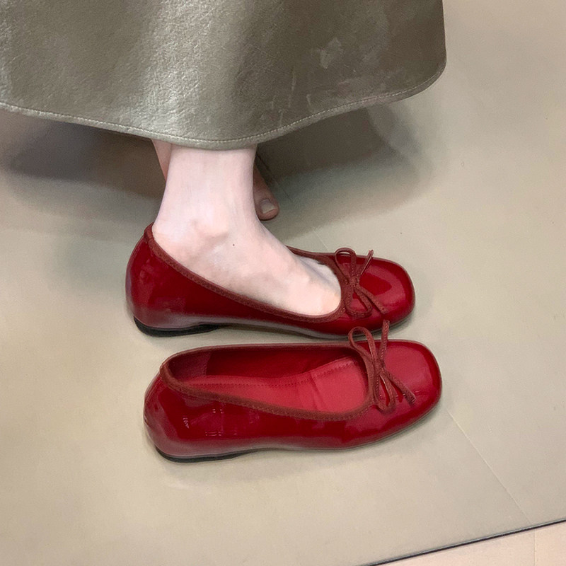 仙女风蝴蝶结红色单鞋2025春季新款法式温柔配裙子浅口内增高瓢鞋