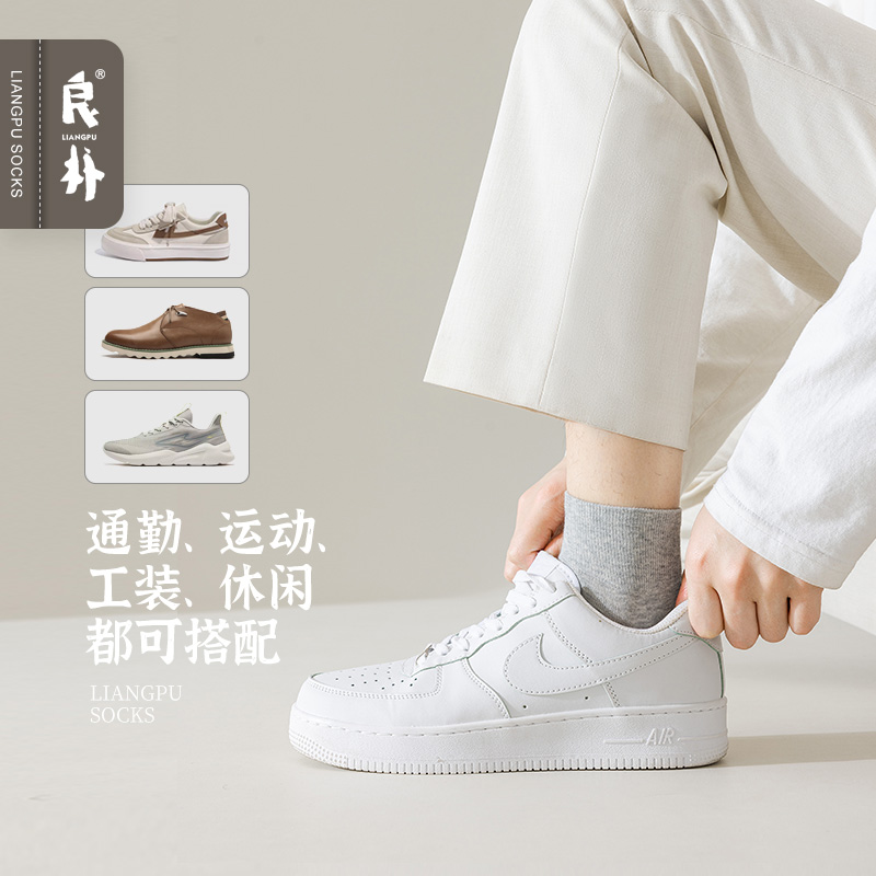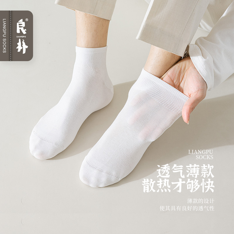 良朴男士夏季袜子薄款男款运动休闲棉袜吸汗透气男袜纯色复古短袜