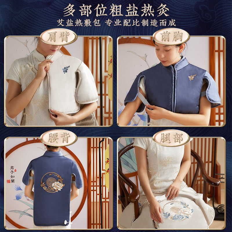 海盐肩颈热敷包电加热盐袋艾草理疗袋马甲颈椎艾灸披肩粗盐护肩背