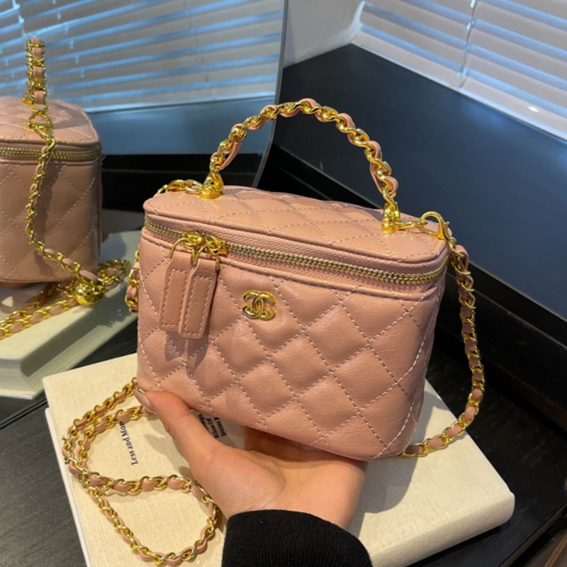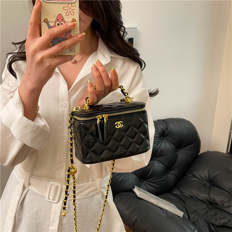 2025新款韩版小香风菱格链条包跨境百搭时尚盒子包金球单肩斜挎包