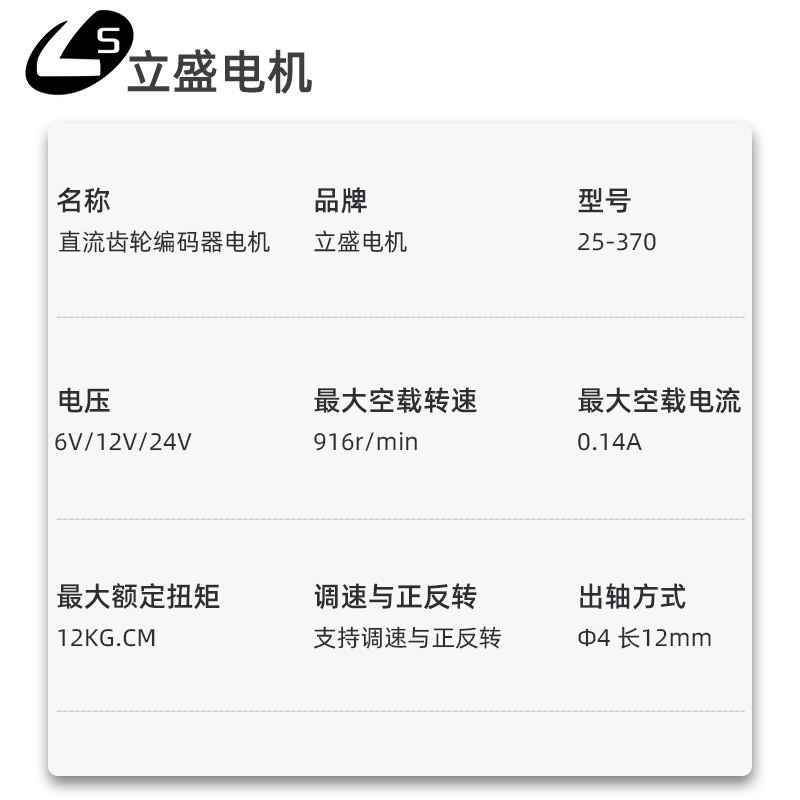 立盛带编码器GA25-370微型直流减速电机大功率调速小马达6V12v24v