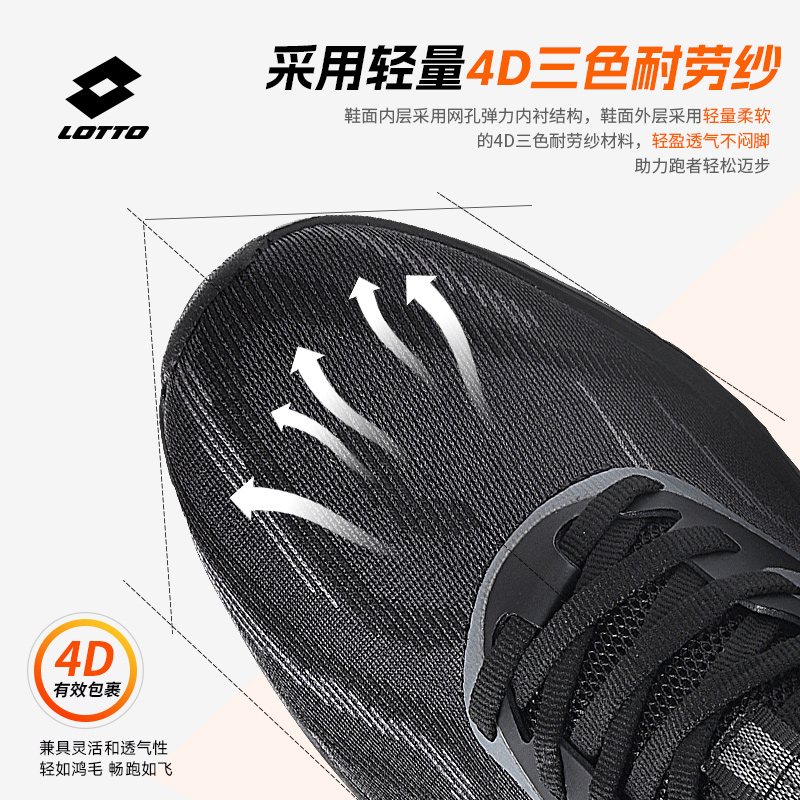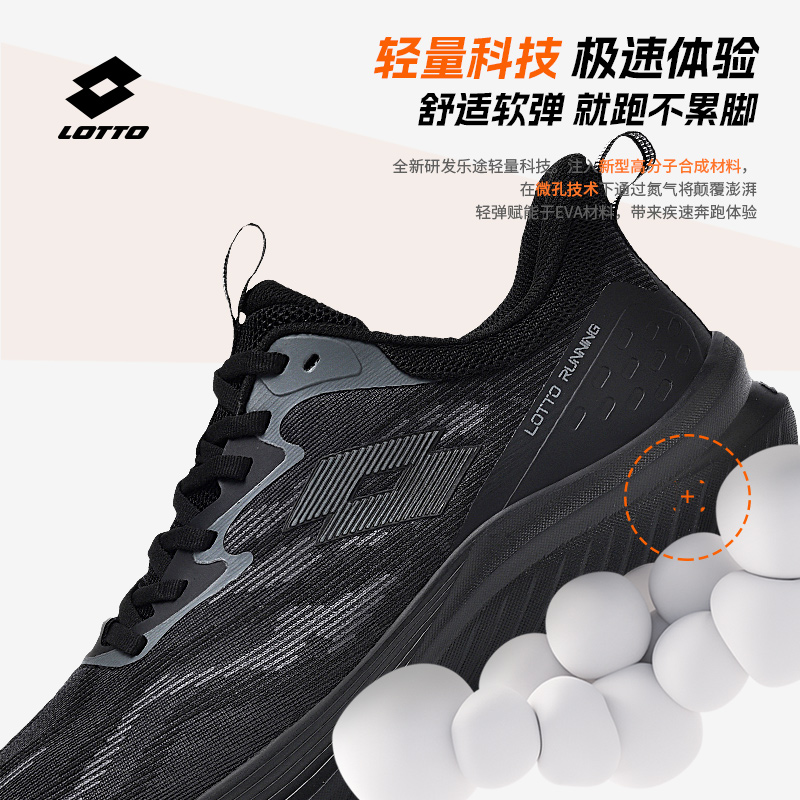 LOTTO乐途男黑色透气网面跑步鞋2026春秋季新款超轻减震运动跑鞋